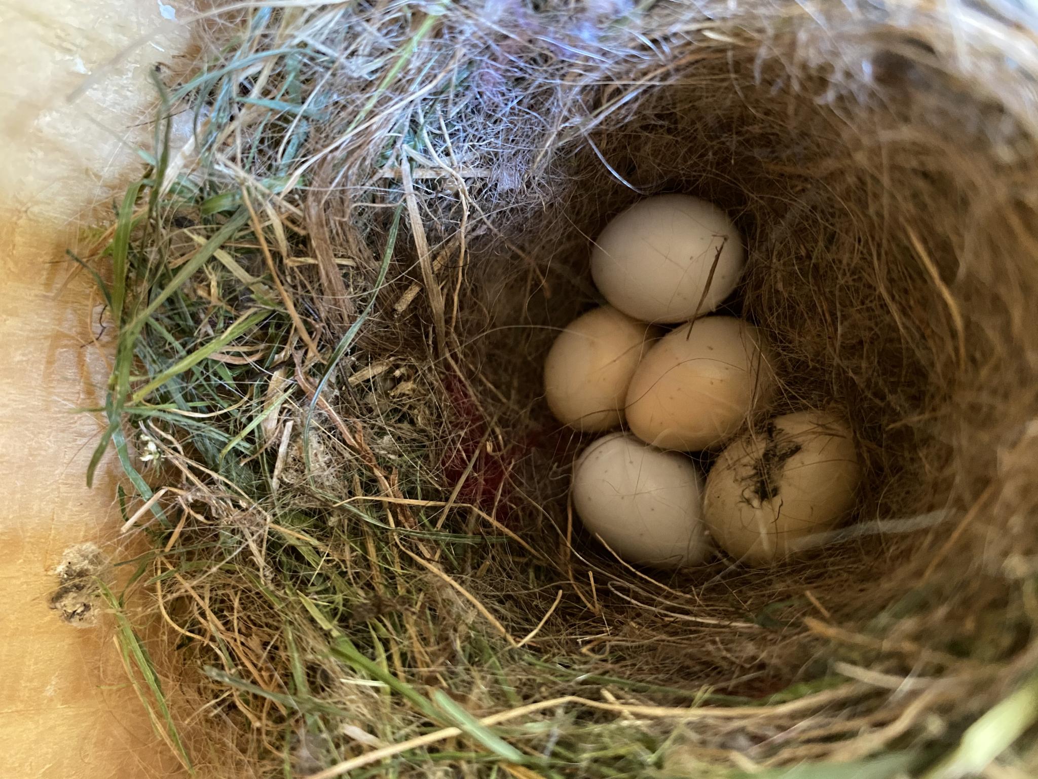 Ich dachte erst, da ist das erste bereits geschlüpft. Es waren aber erst 10 Bruttage. Von dem Hausrotschwanz fehlt leider jede Spur.