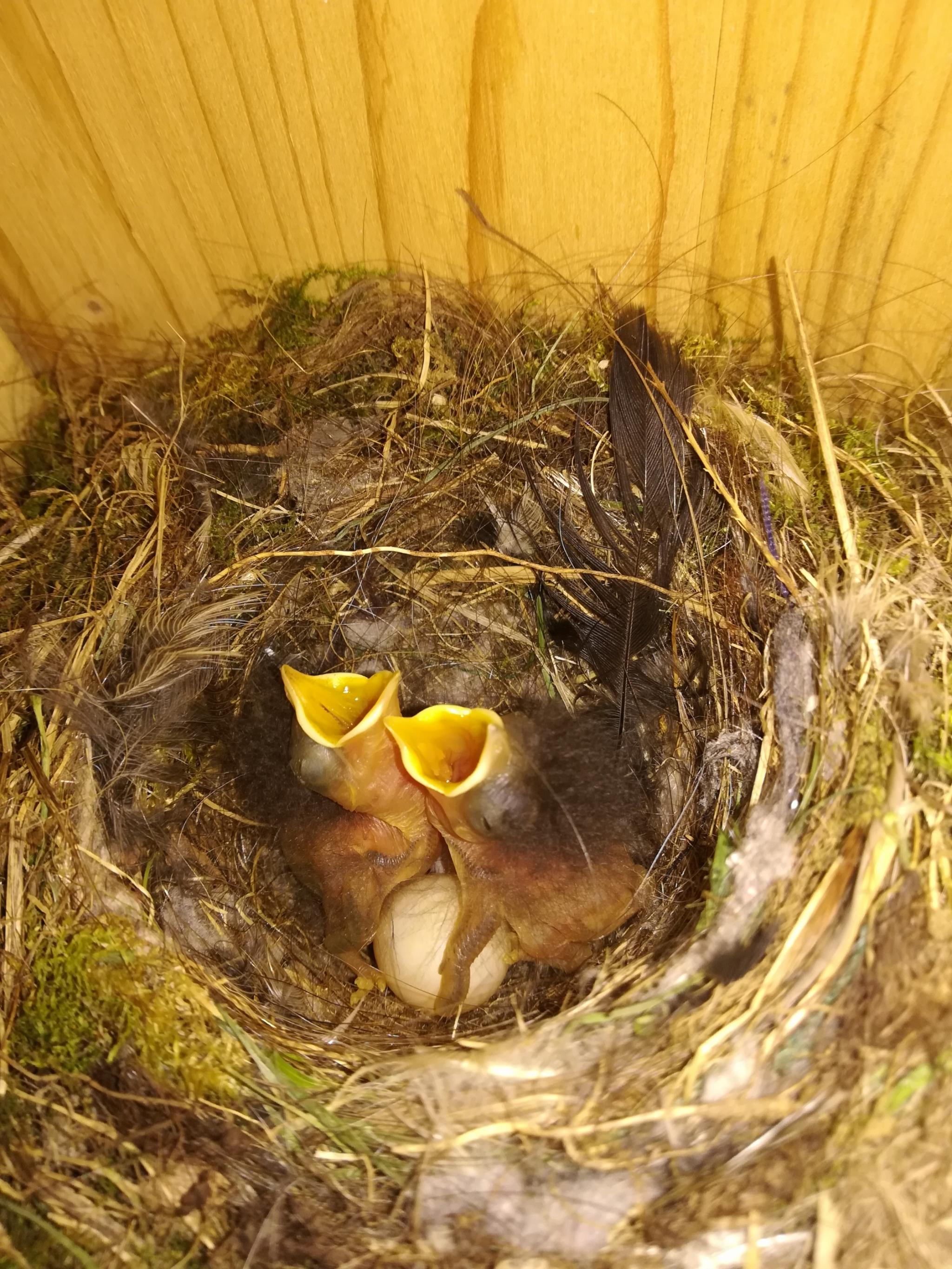 Dieses Jahr sind die Eier befruchtet. Sonst hätte ich keine Eierschalen gefunden und die beiden Eltern würden nicht füttern.