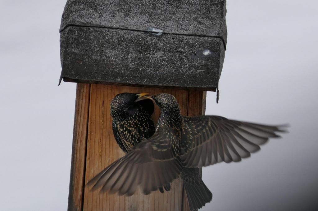 Mal schauen, wann das Wetter die Starenhormone zum Höchststand bringt. 2018 hatte ich zur Freude der Spatzen keine Starenbrut,2019