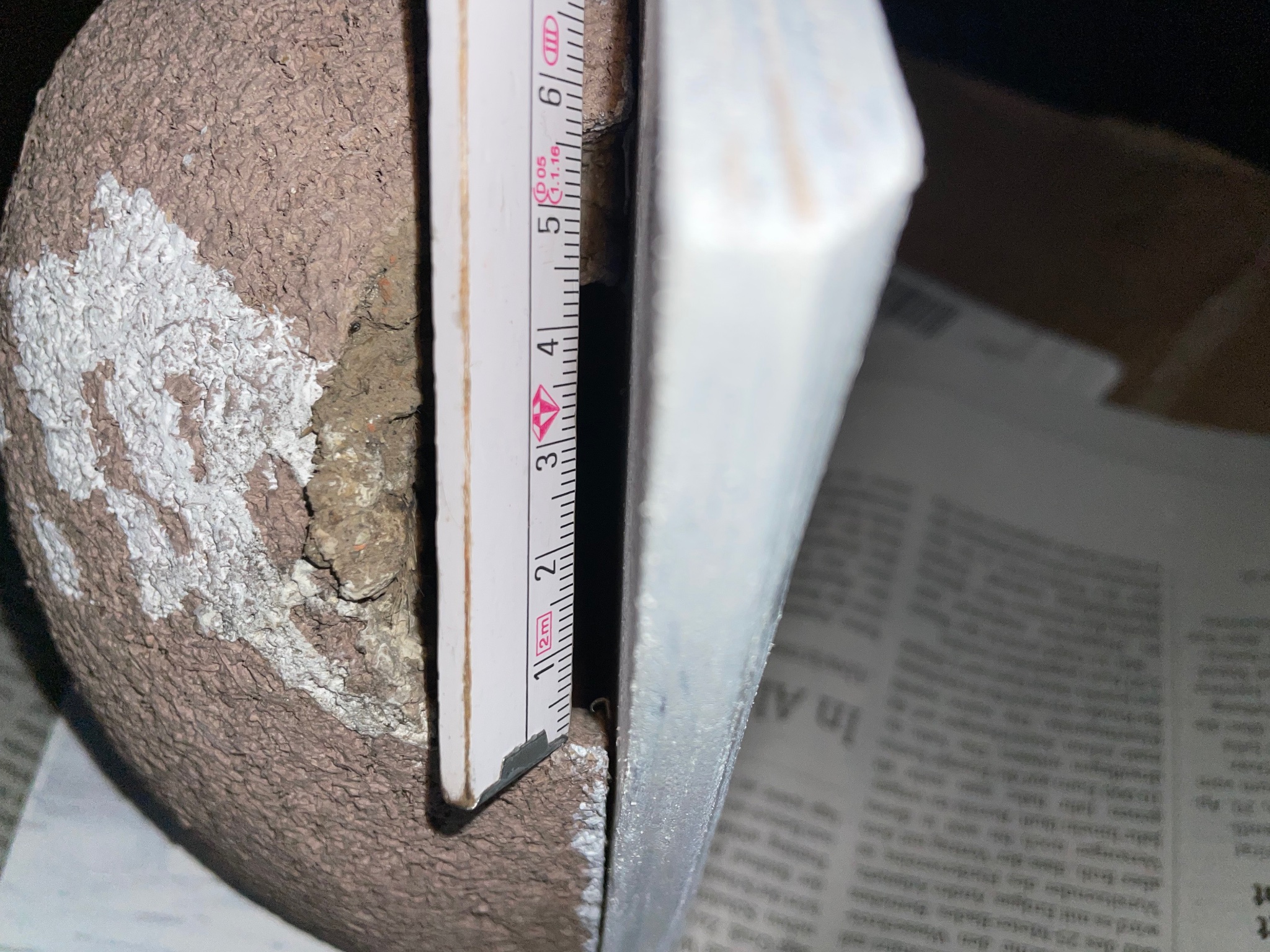 Die entsprechen etwa einem Radius von einem Kreis mit dem Durchmesser von 85 mm. Das entstandene Einflugloch hat ca. eine Breite von 70 mm