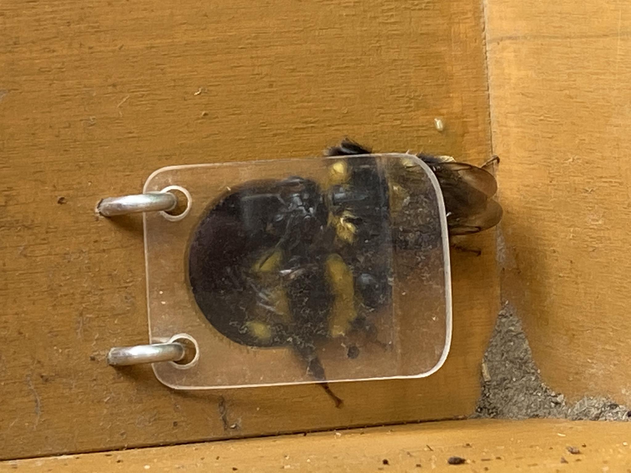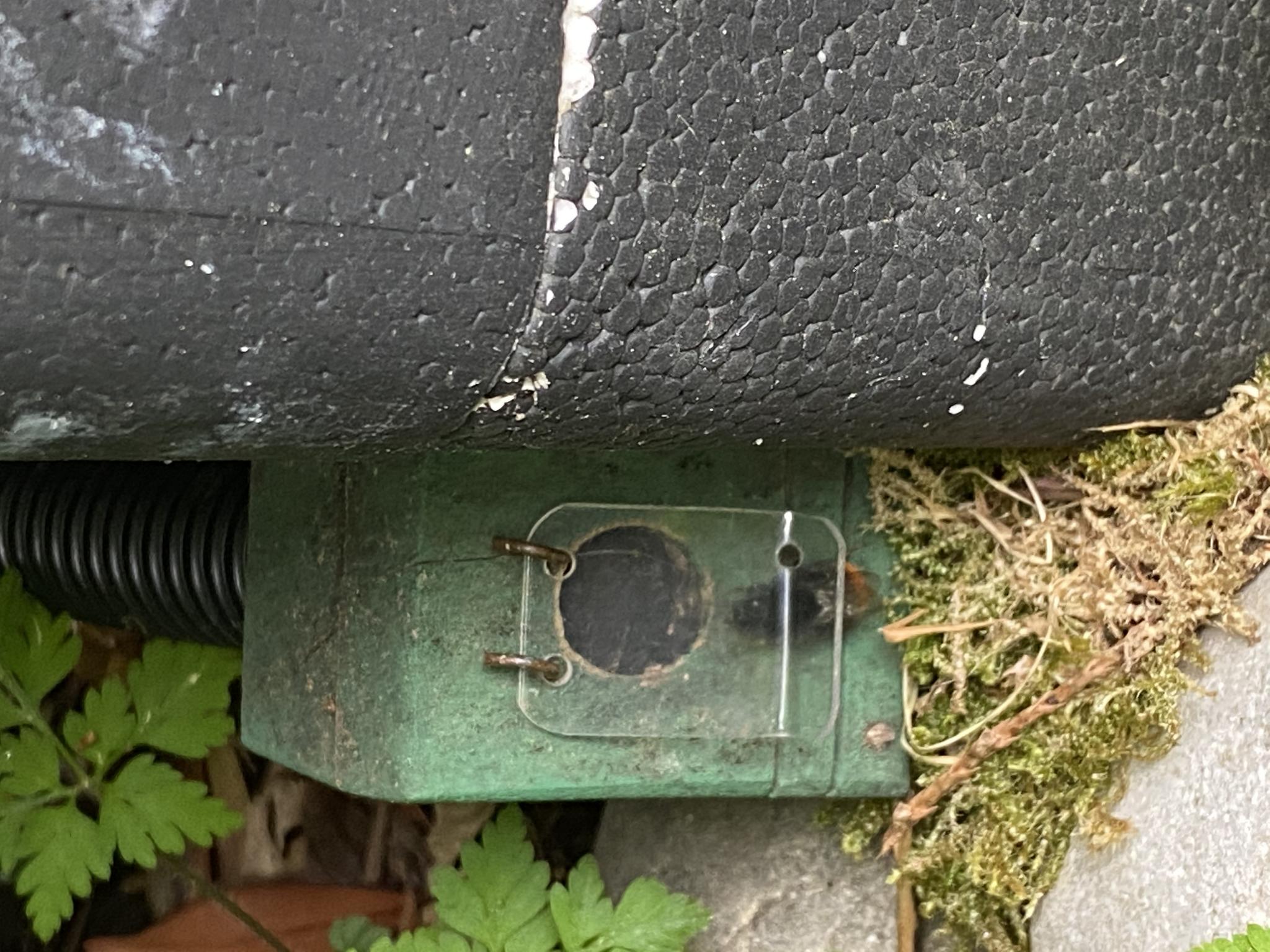 Hummeltischler Kasten: aktive Ansiedlung einer Erdhummel, die mit der Wachsmottenklappe sehr gut klar kommt.