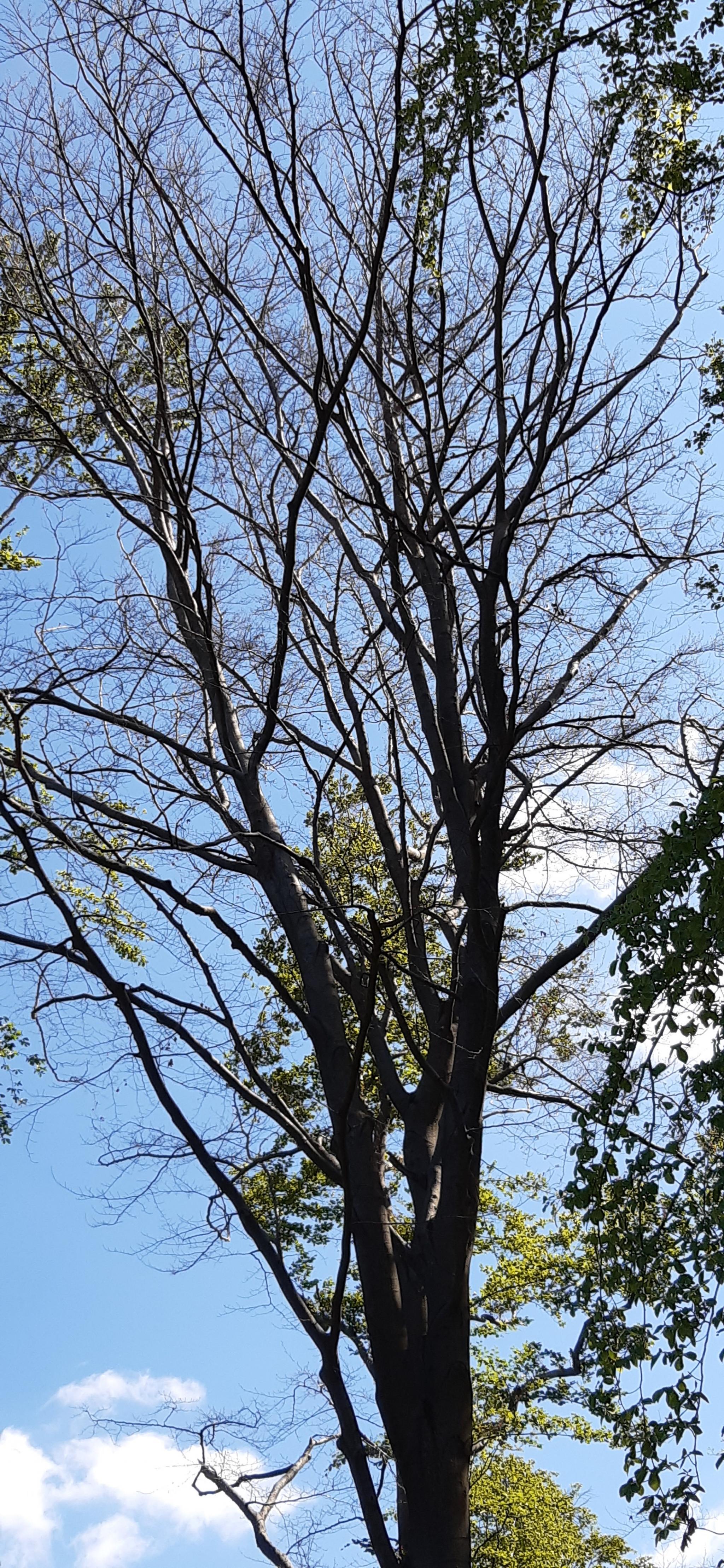 In den letzten beiden Jahren hat sie Anfang August fast Dreiviertel des Blätterkleides abgeworfen. Dagegen sah die direkt benachbarte Blutbuche taufrisch aus... wieso auch immer.