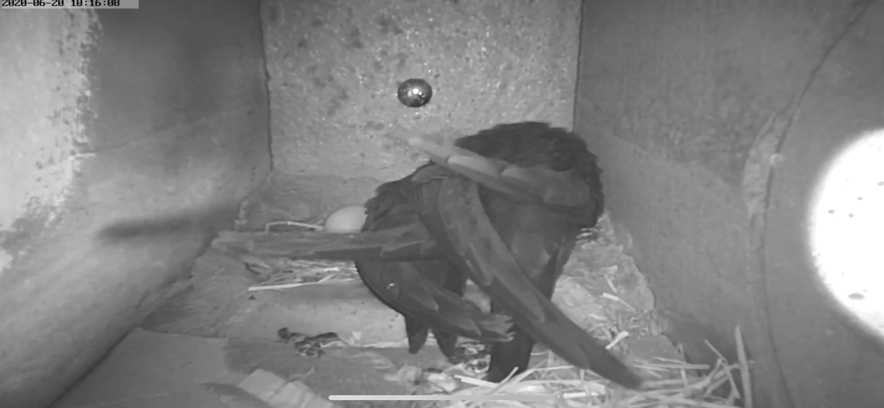 Oh, sehe gerade im Livevideo den Brutwechsel und in das Nest, noch kein Schlupf.