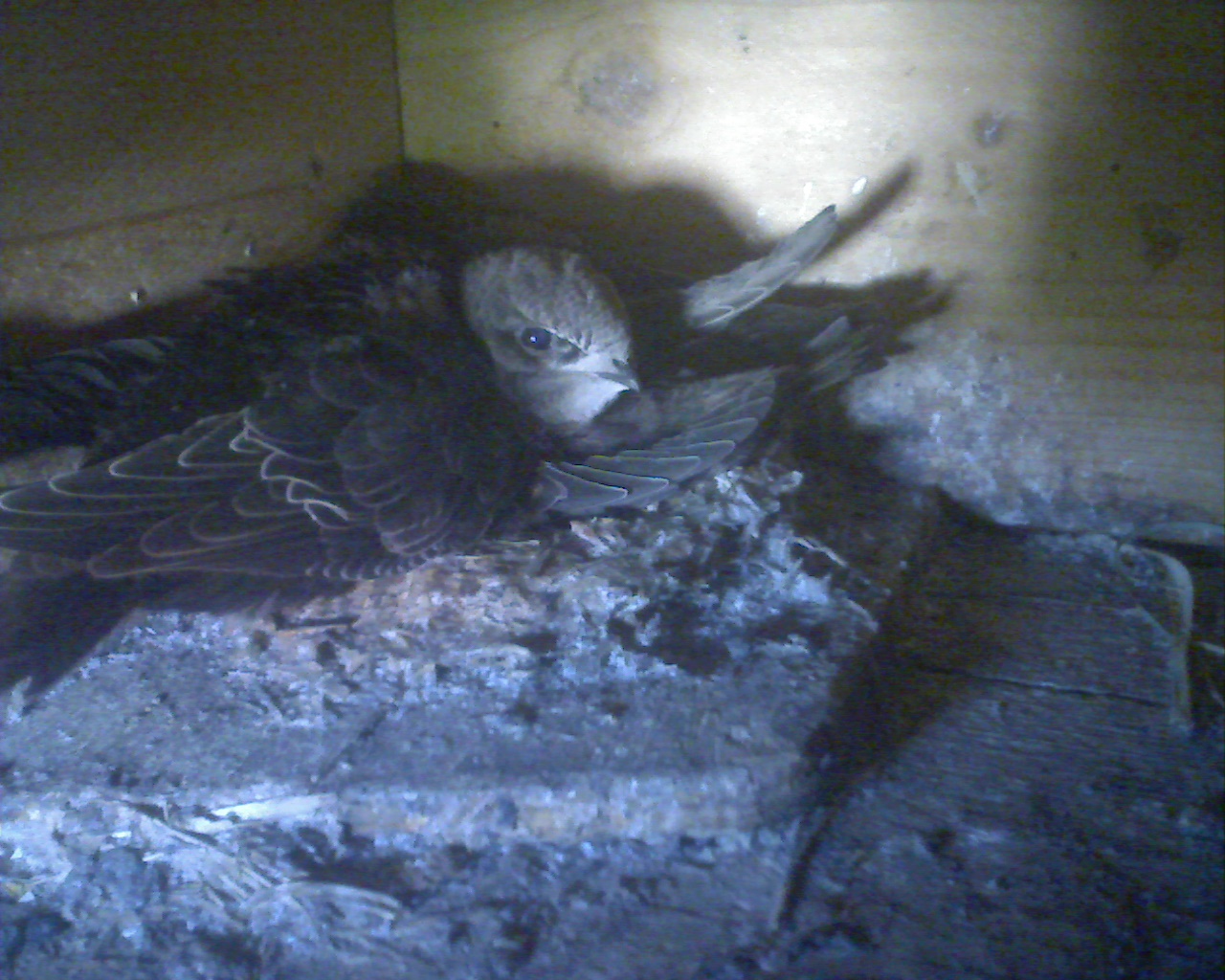 Bis jetzt habe ich nur eine Kamera zur Verfügung, aber zum Glück zogen die Bewohner in den letzten Jahren in dieser Box immer 2-3 Junge erfolgreich groß. Anlocken musste ich nicht, sobald die erste Familie eingezogen war rufen sich bei den abendlichen Häuserrunden die Segler gegenseitig. In diesem Jahr begann die Brut schon verhältnismäßig zeitig. Aber schaut selbst meine drei 20er in der Kamerabox.