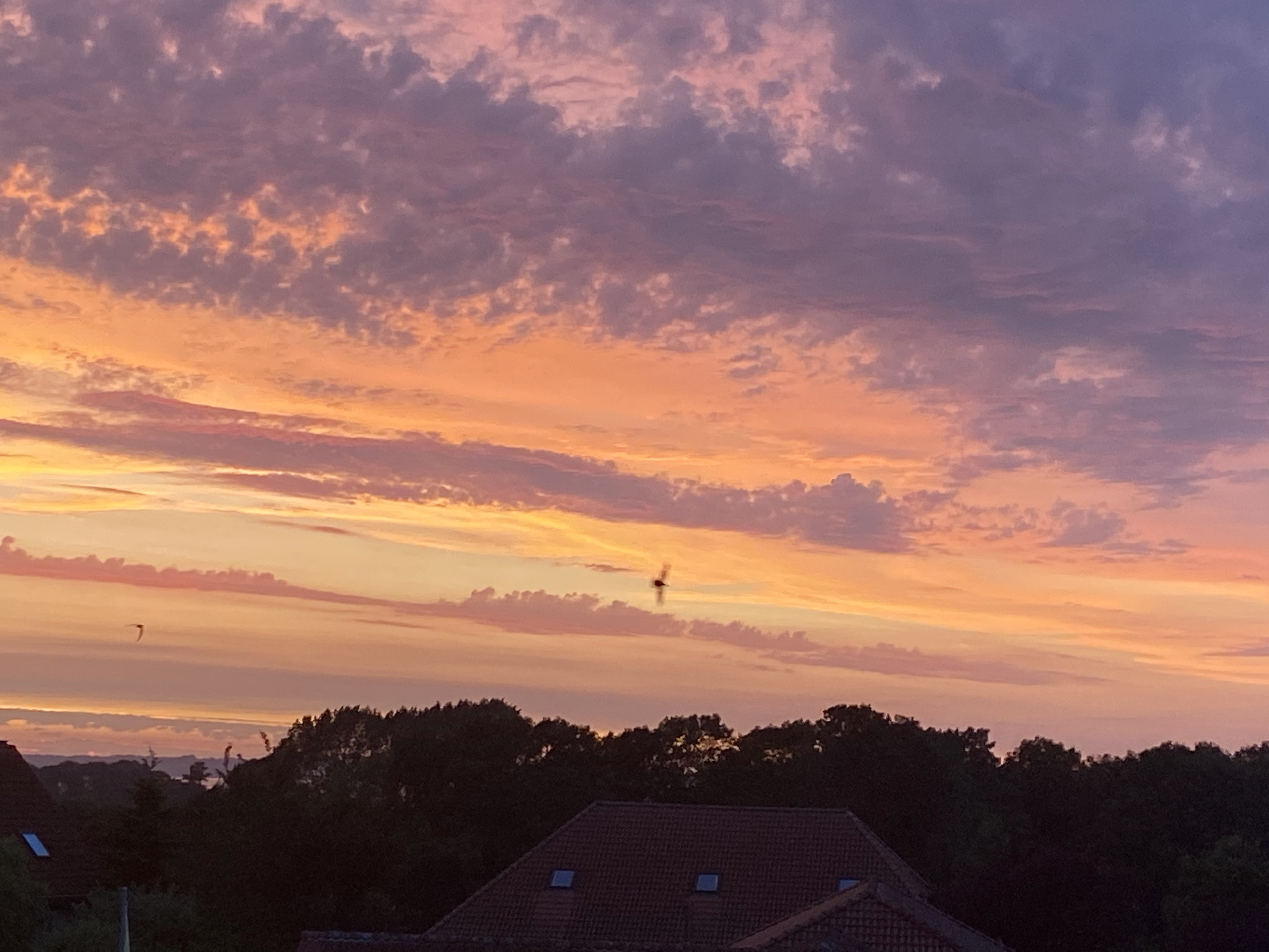 Sonnenuntergang ist bei uns um 21.12 h gewesen, um 21.25 h flog er ein.