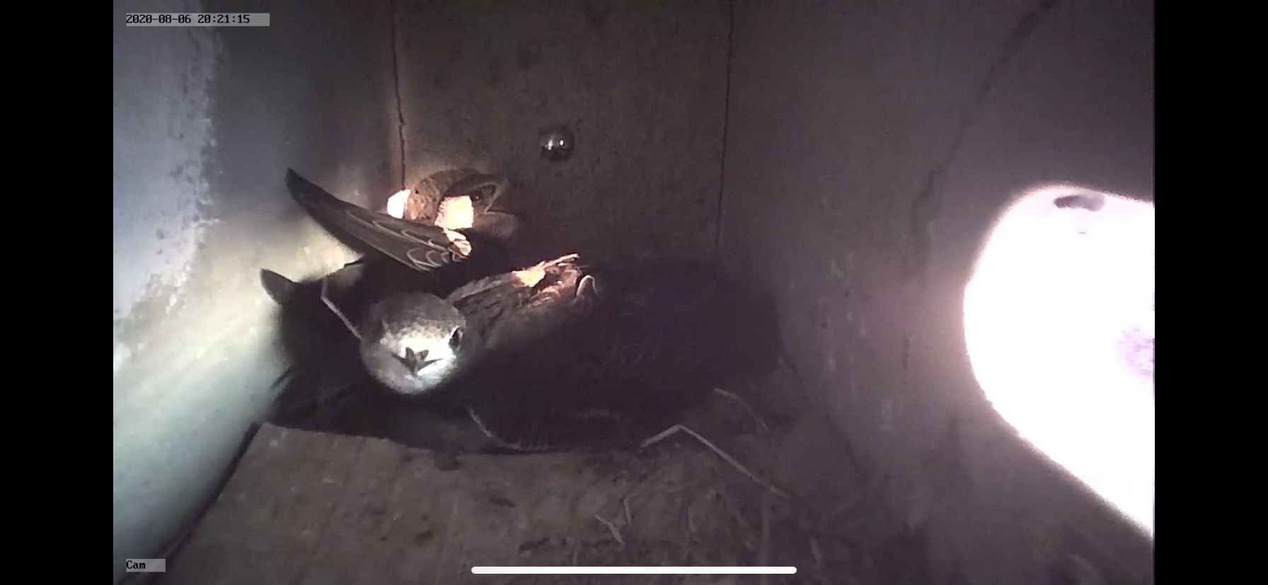 In ca 14 Tagen werden diese beiden Jungsegler ausfliegen. Ich freue mich natürlich sehr über die Verlängerung der Saison. Die Altvögel füttern pausenlos. Selbst bei zunehmender Dämmerung wird ständig weitergefüttert. Es sind nur noch meine Paare aus Kasten 1 und 6 am Himmel. Alle anderen sind schon aufgebrochen.