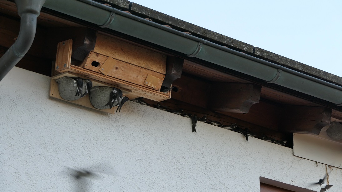 Die Kunstnester im Giebel zu befestigen ist mir zu wackelig, in der Höhe.![]()