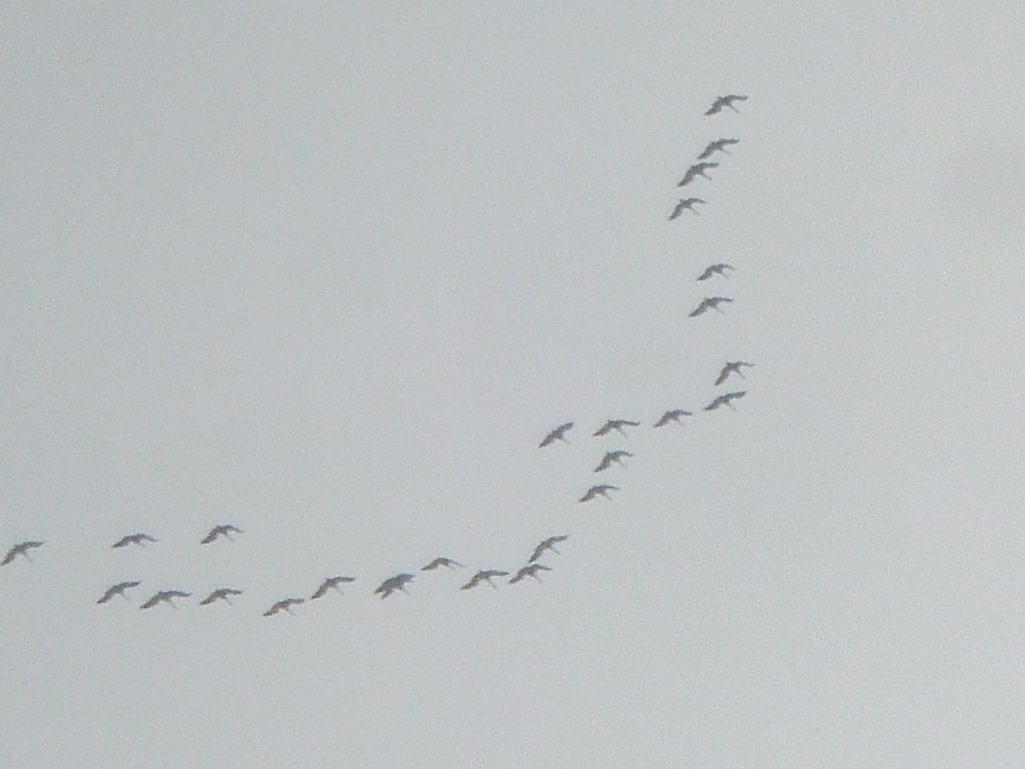 Heute endlich mal zeitweise blauer Himmel und passend dazu Kraniche im Formationsflug Richtung Norden.