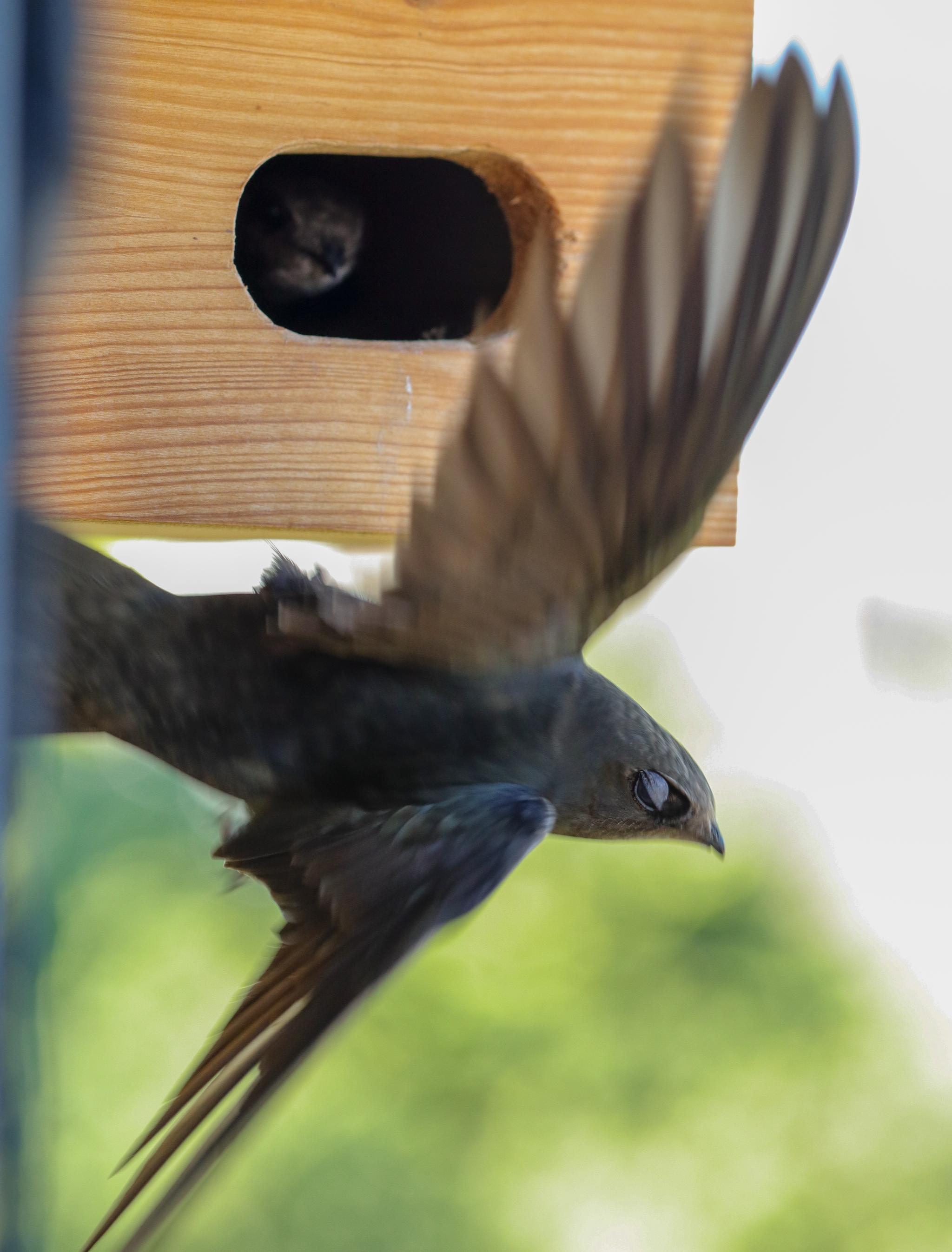 Daraufhin setzte ich den verwaisten Jungsegler in Kasten 1. Dort war der erste junge Segler bereits ausgeflogen und einer war noch im Kasten. Die Adoption glückte und das Waisenkind wurde angenommen und bis zum Ausflug gefüttert.