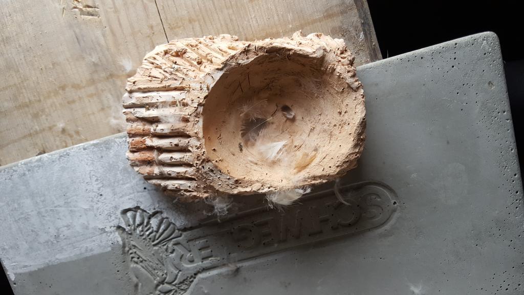 Ich habe auch noch was selbst getöpfertes als Nistmulde