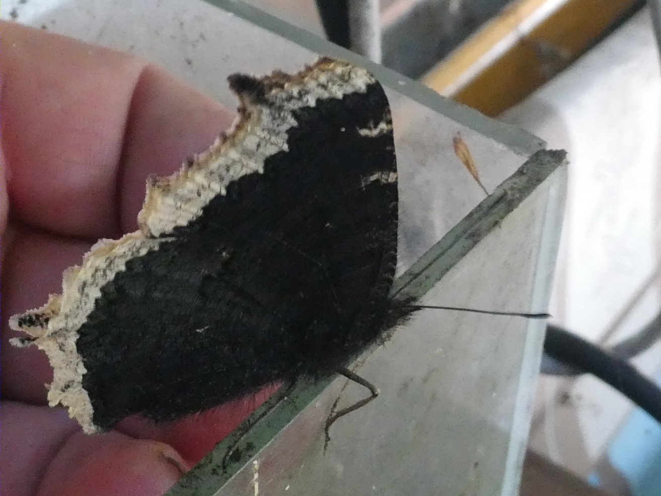 heute fand ich gleich drei Tagpfauenaugen ,die unter einer Trittleiter in der Garage auf den Frühling warten.