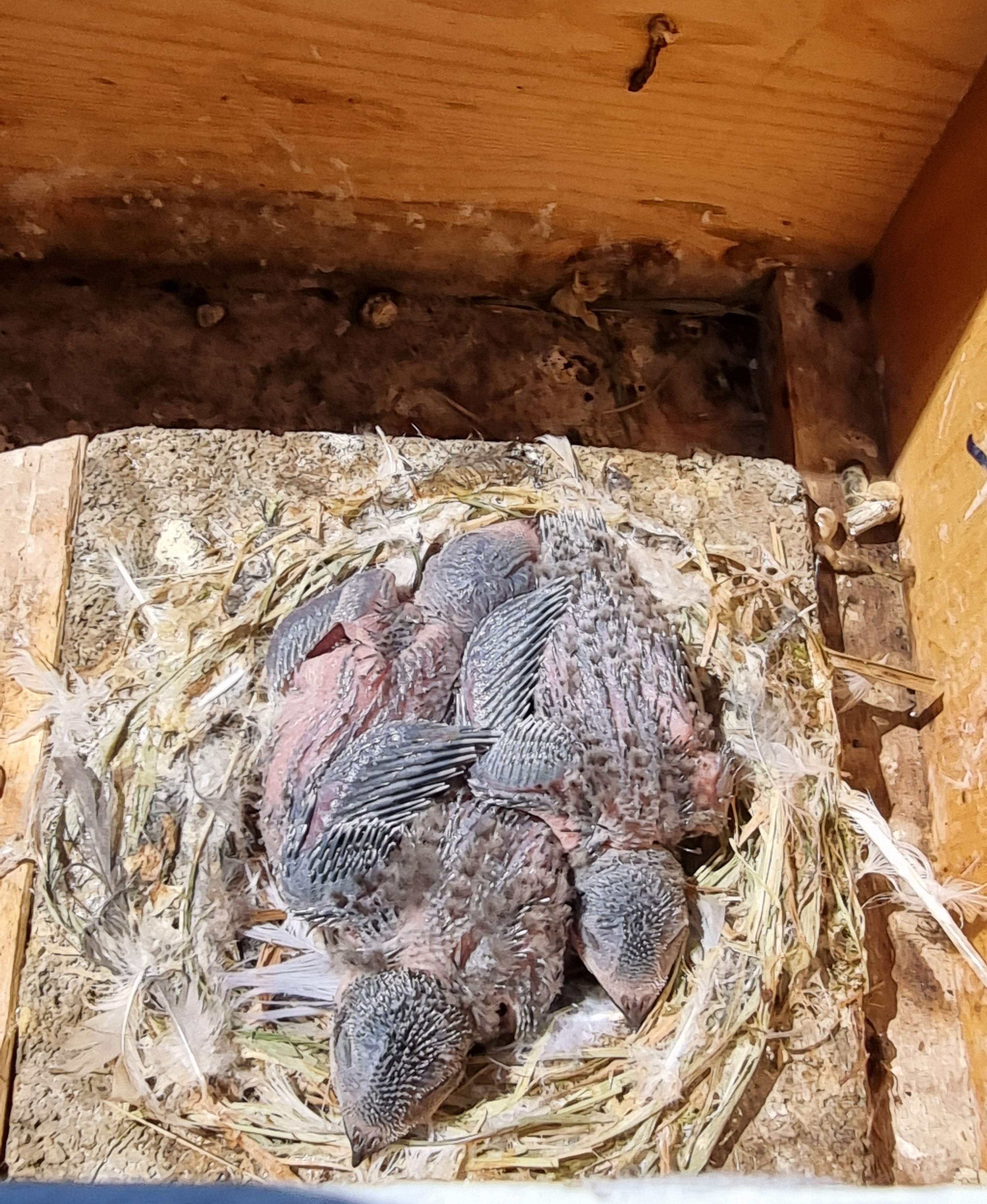 Auch hier konnte ich das von mir zurückgelegte Ei in Kasten 12 nicht mehr sehen (Altvogel saß aber immer auf dem Nest). Es sind dann 5 Tage nach dem Schlupf des 1sten Kükens.