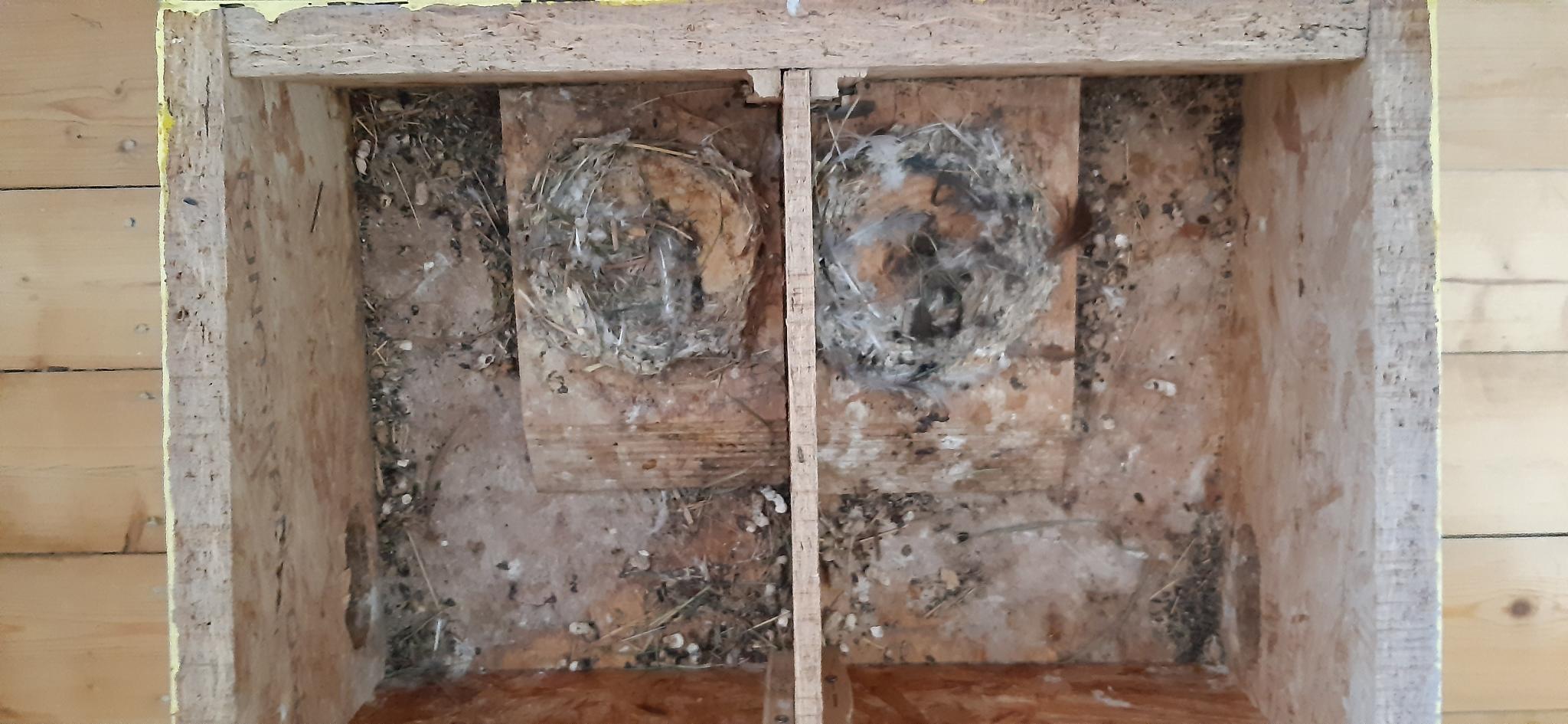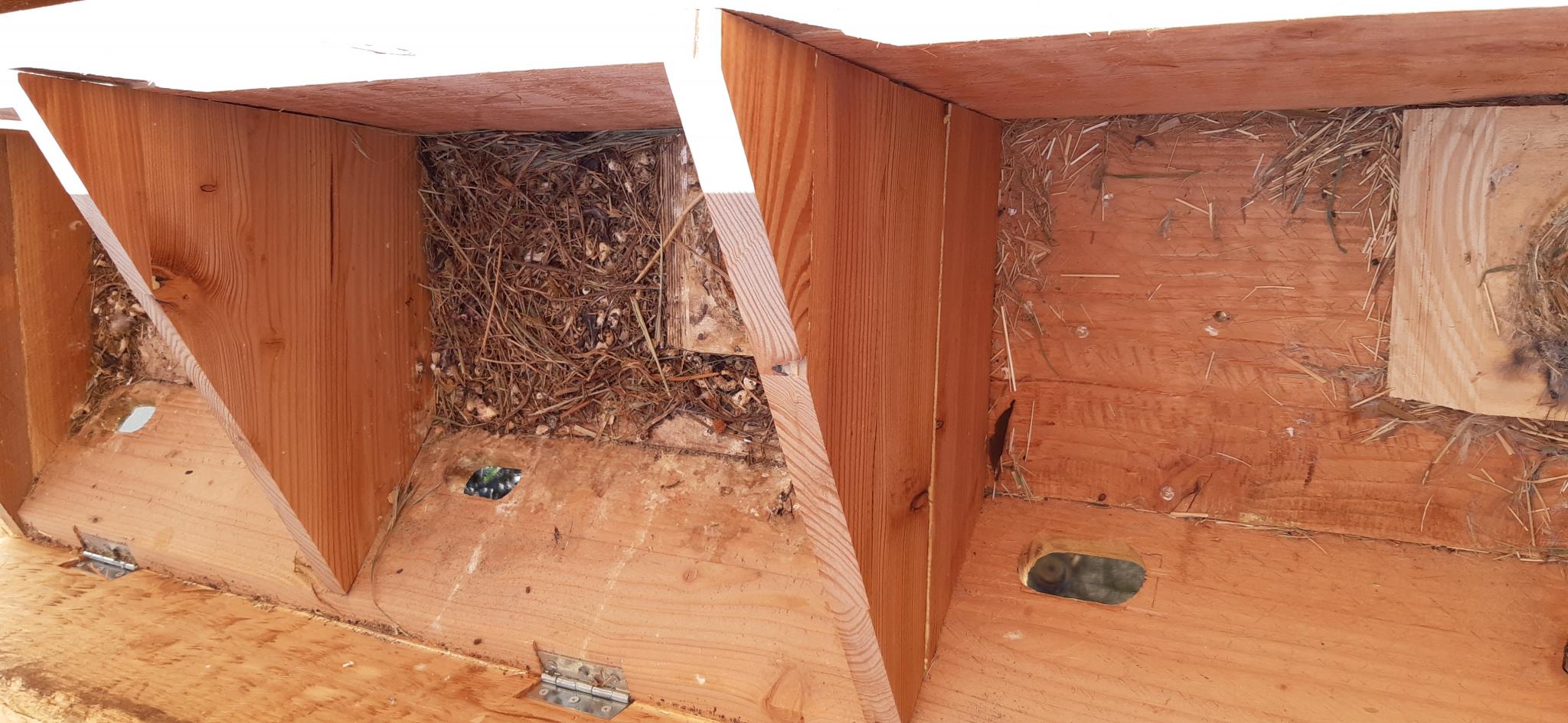 Das von den MS weiter gebaute Nest auf dem Niststein kann zwar auch gereinigt werden (insbesondere von Lausfliegeneiern) wobei das eigentliche Nest aber erhalten bleibt. Ich würde dann noch etwas neues Nistmaterial einlegen und auf die Rückkehr der MS im nächsten Jahr warten.