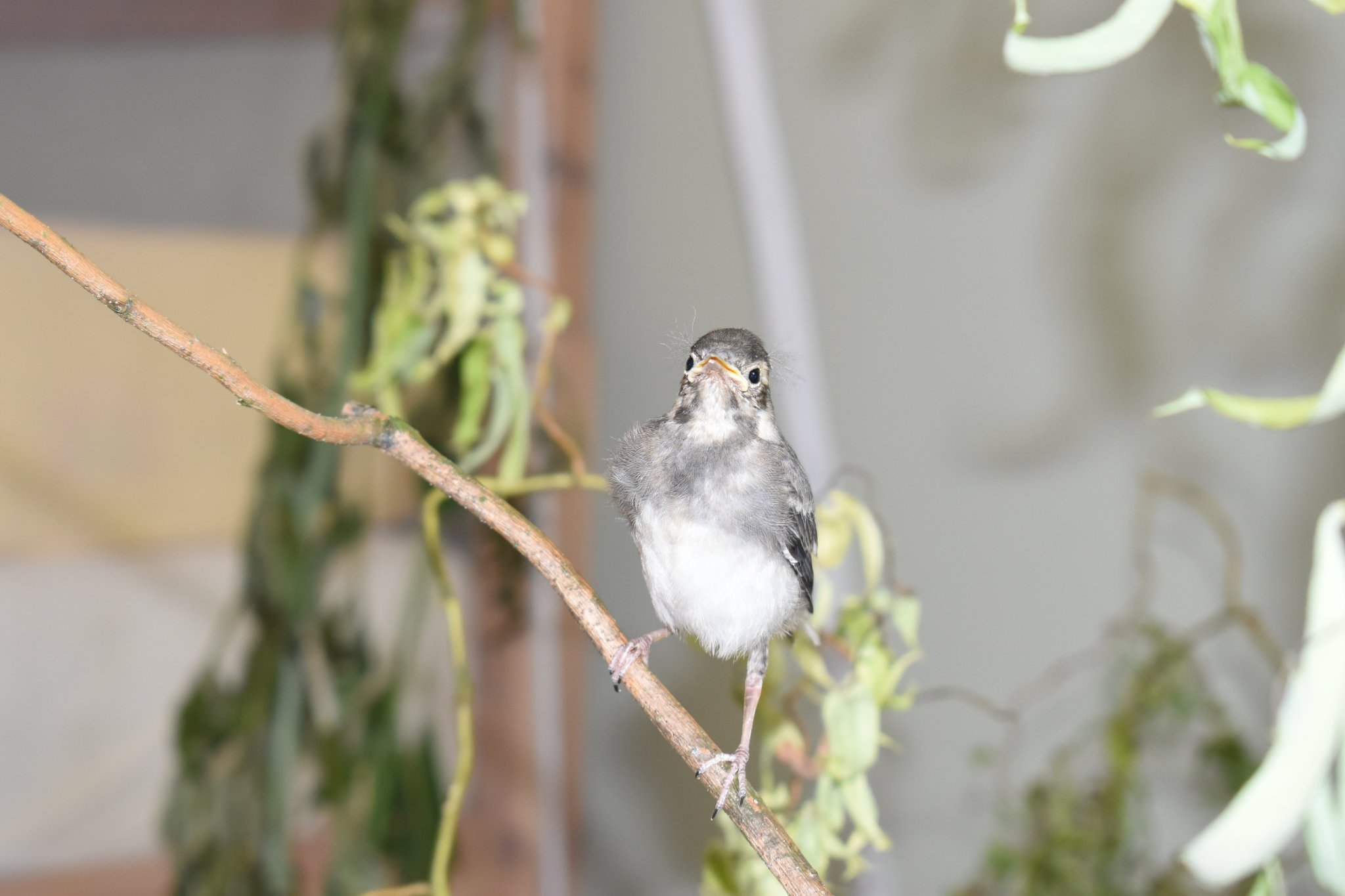 Es wäre so einfach gewesen, die Kleine an einen halbwegs sicheren Platz zu setzen. Da sie laut rief, hätten ihre Eltern sie sicher sofort gefunden und weitergefüttert. Während die Rotkehlchen ab dem zweiten Tag bettelten und gut fraßen, rief die Bachstelze stets dann, wenn niemand im Zimmer war. Wenn jemand zum Füttern kam, öffnete sie ihren Schnabel weit, nahm einige Insekten an und verließ dann immer in Panik ihren Platz. Minuten später konnten wir das Spiel wiederholen. So ist Fütterung aufwendig und macht sicher beiden Seiten gar keinen Spaß ;( .