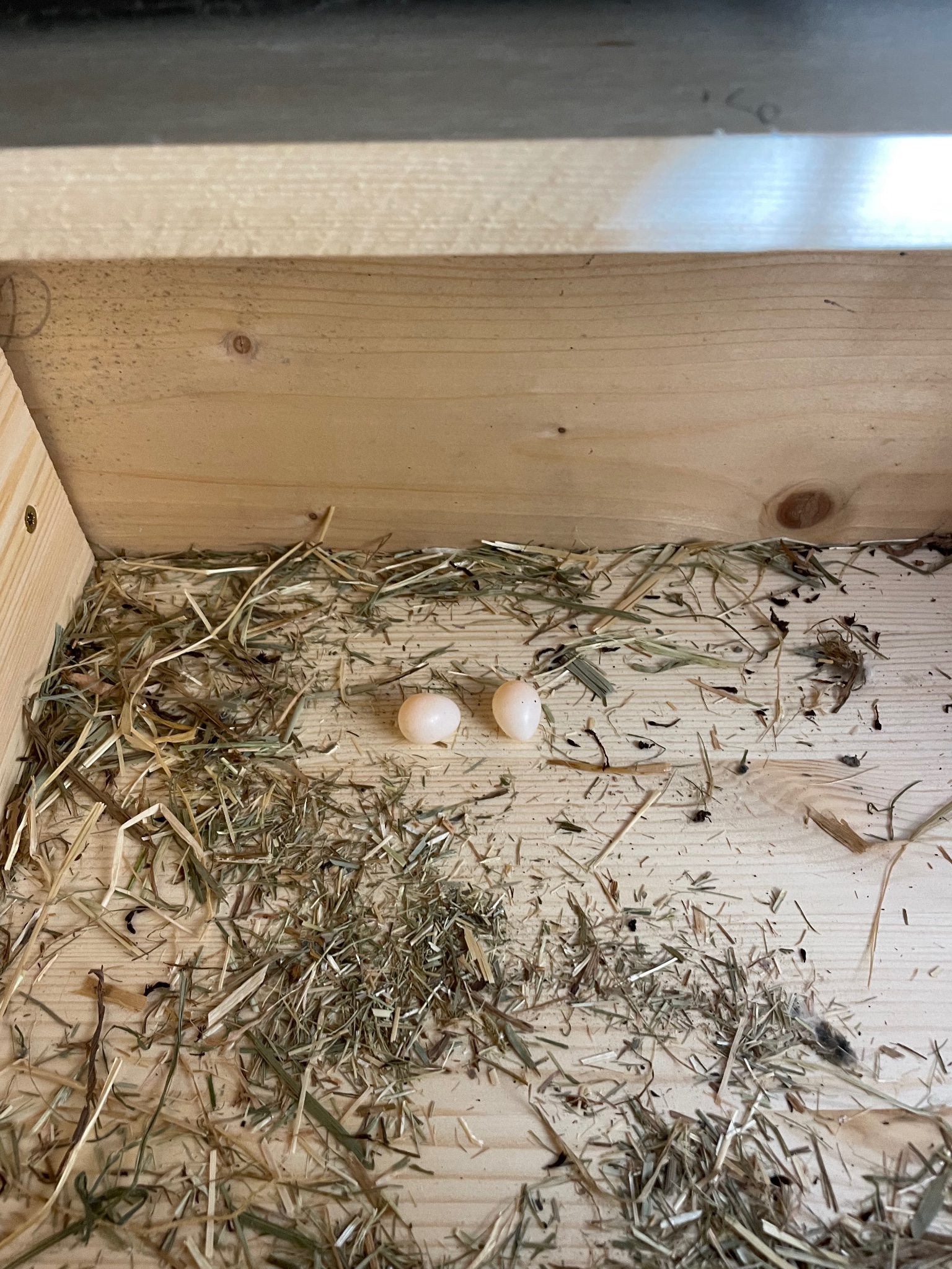 Im nächsten Kasten wurde noch mehr angeklebt und es lag ein Ei darin ,in einem anderen Kasten lagen zwei Eier darin. Während wir dastanden, kamen Mehlschwalben an das Einflugloch geflogen. Weil die Zeit knapp war ,hatten wir nicht alle Kästen geöffnet .Ich könnte mir aber vorstellen ,dass es in den anderen Gästen ähnlich aussieht.Mal schauen was da rauskommt.Da die Eier aber keinen Halt haben, denke ich , daß sie verrollen. Für Nistmulden fehlte im Vorfeld leider die Zeit.Wäre interessant gewesen , ob die diese uch genutzt hätten.