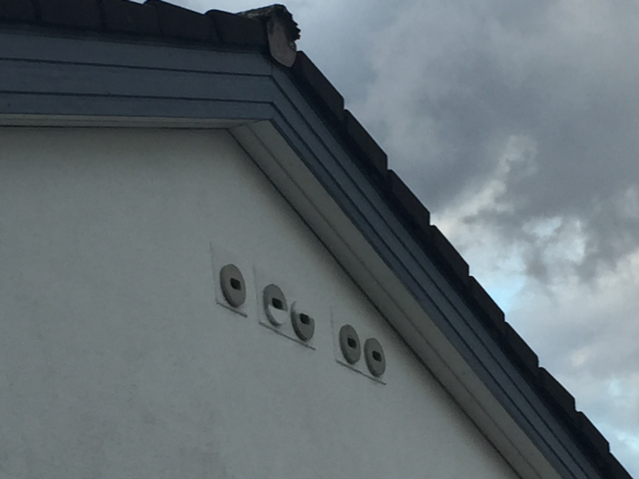 Es ist immer so eine Sache mit der Anbringung eines Blechs oder Bretts. Der Sperber kommt dann zwar schwer an die Einflüge, andererseits haben die Segler besonders beim Ausflug schlechtere Sicht und müssen sich auch an die neue Einflugsituation anpassen. Ein schräges Blech oder Brett, das einen ca. 15 cm breiten Überstand über den Einfluglöchern bietet wäre sicher eine Option die man mal durchplanen könnte und vermutlich von den Seglern gut toleriert wird.