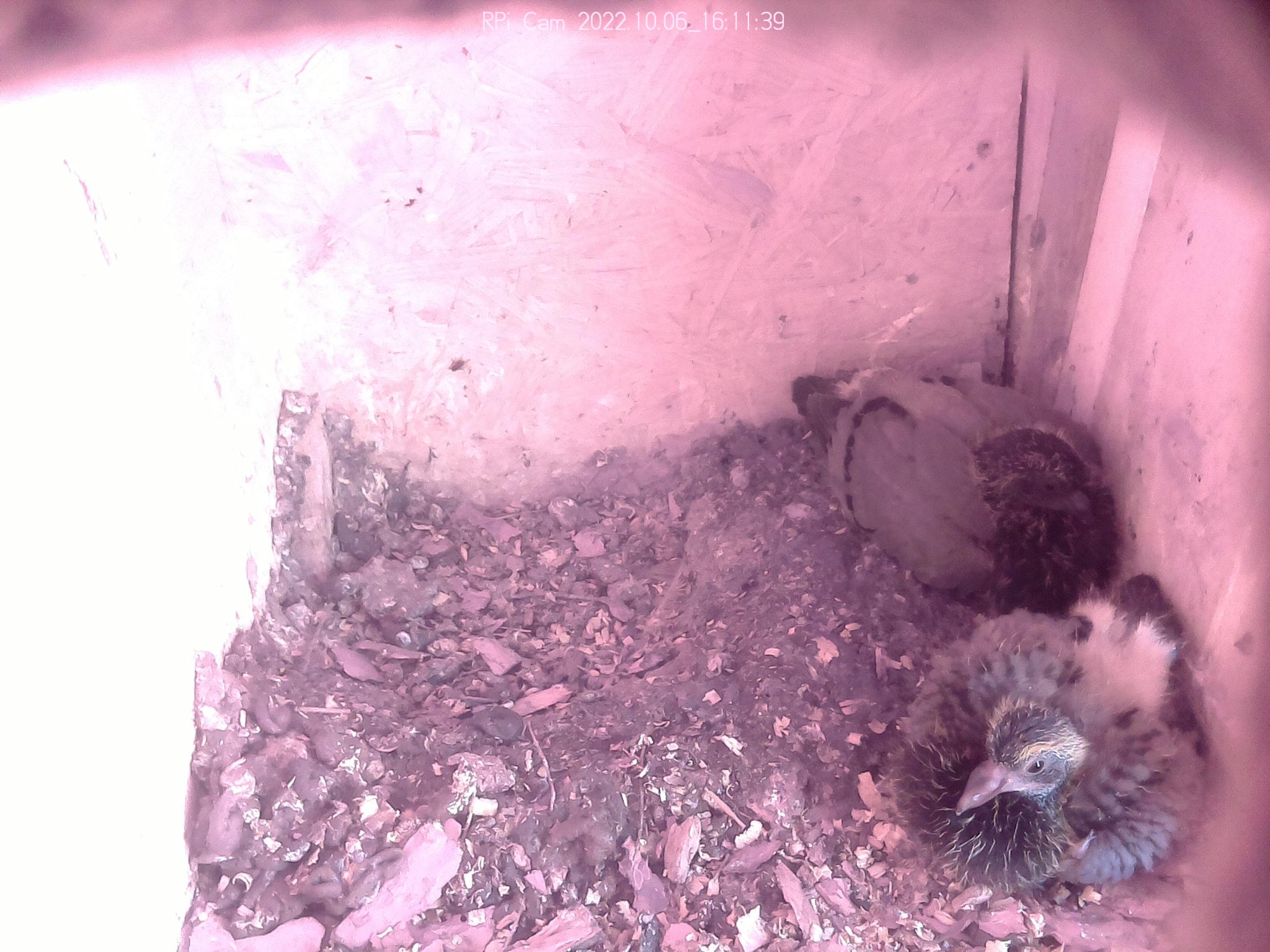 Ich konnte schon die Fütterung von beiden Altvögeln im Kasten beobachten.