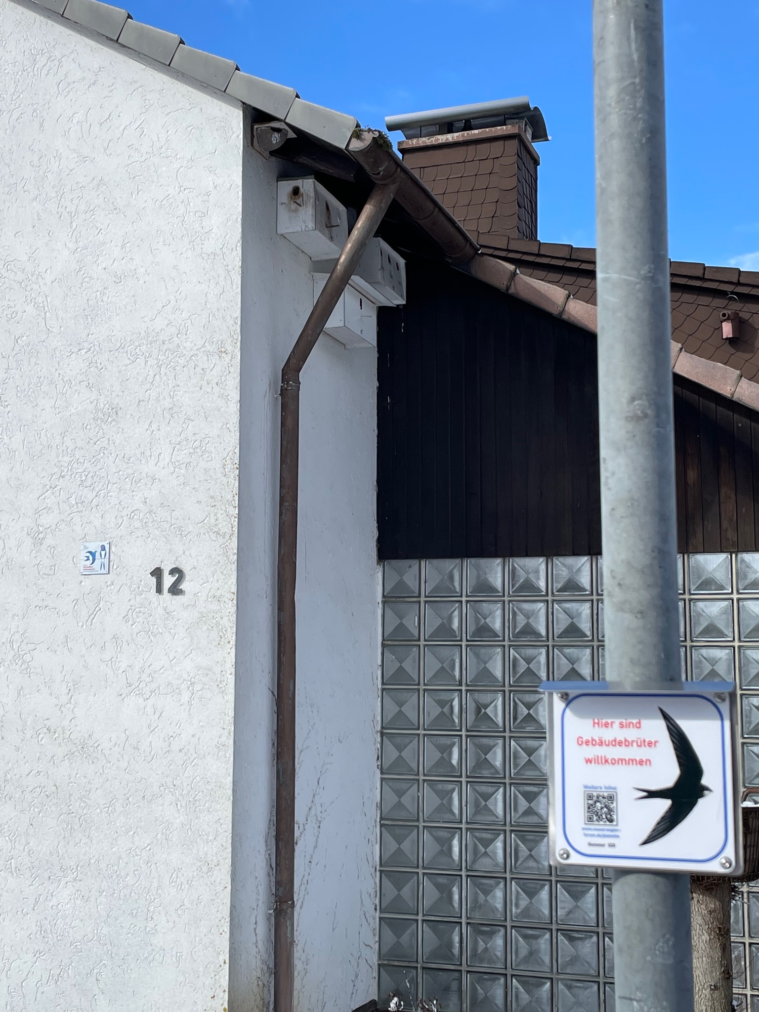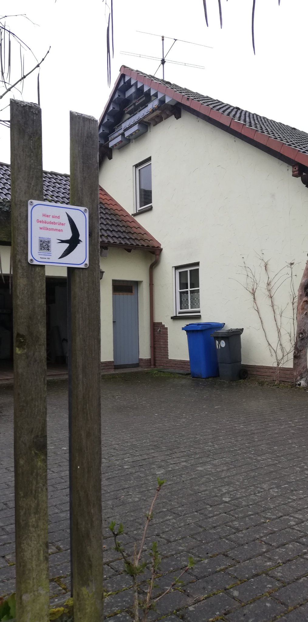 angefertigt ,nochmal vielen Dank! Ein positiver Nebeneffekt, wenn man bei fremden Leuten klingelt und sie dazu bewegen kann Schwalbennester und Mauerseglerkästen am Haus zu befestigen👍.Da die Straße hier eine Sackgasse ist, ist der Publikumsverkehr allerdings nicht sehr hoch. Im Hintergrund hängt noch eine Plakette vom NABU an der Hauswand.