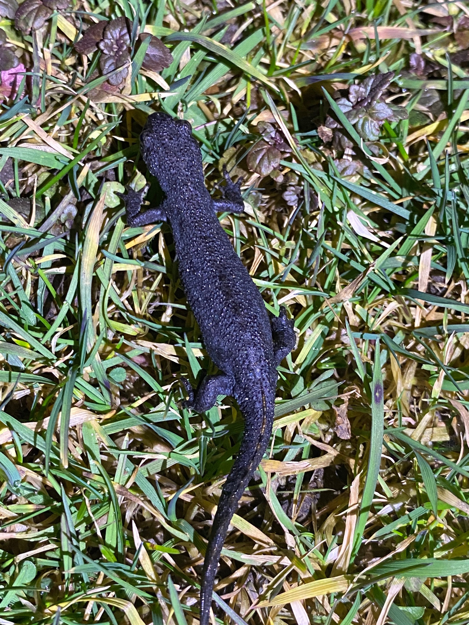 Es fing heute Nachmittag an zu regnen und die Bergmolche sind schon aktiv.