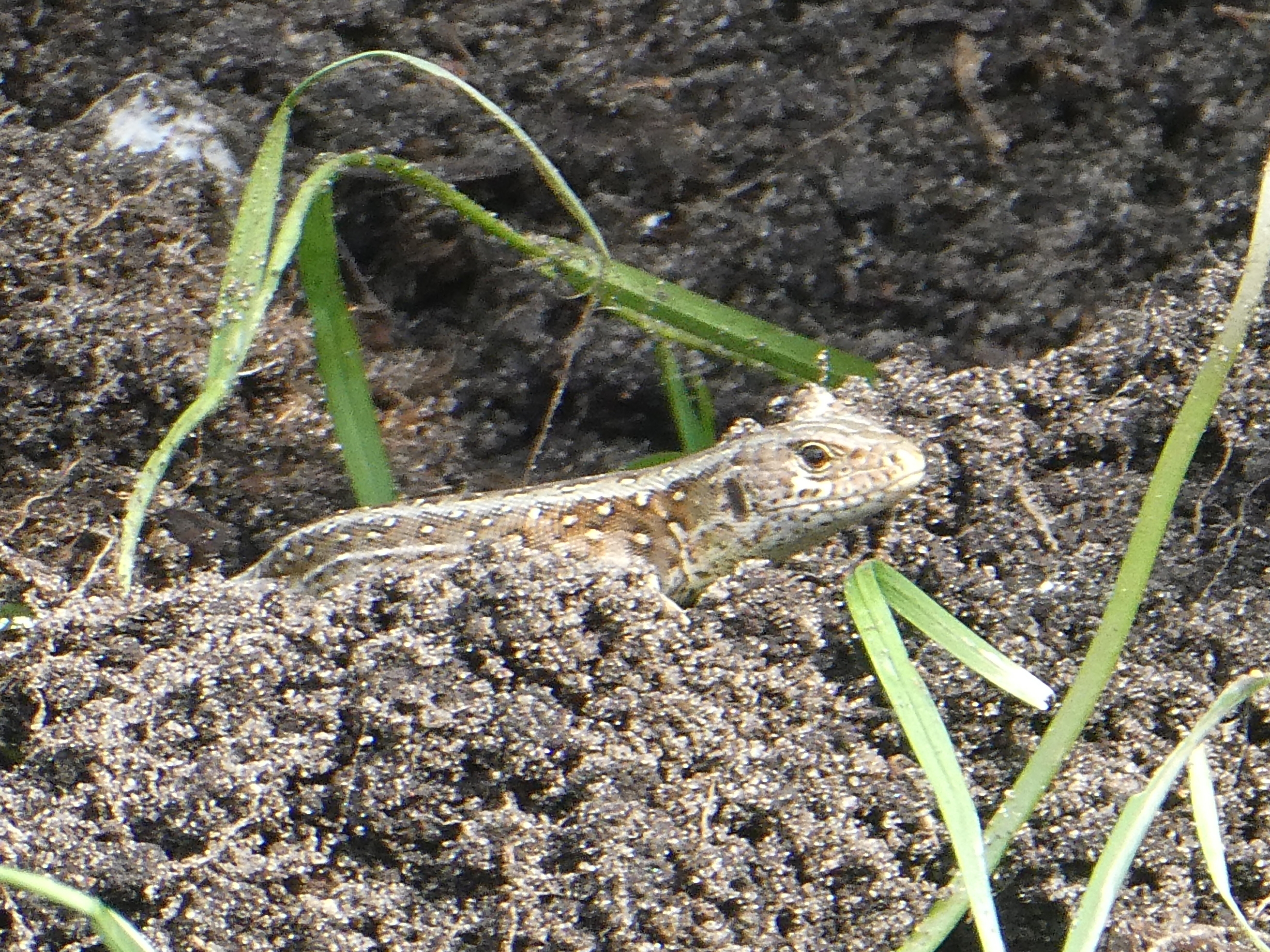 Vor wenigen Jahren begann sich um unser Haus eine kleine Mauereidechsen-Population zu entwickeln. Heute huschten gleich mehrere ausgewachsene Exemplare über den Vorplatz und eines traf ich sogar auf der Haustürschwelle an, von wo aus sofort in der Scheiterbeige (gemäss Duden in CH, Süd- und Südwestdeutschland der Begriff für einen Holzstoss) neben der Tür Deckung gesucht wurde.