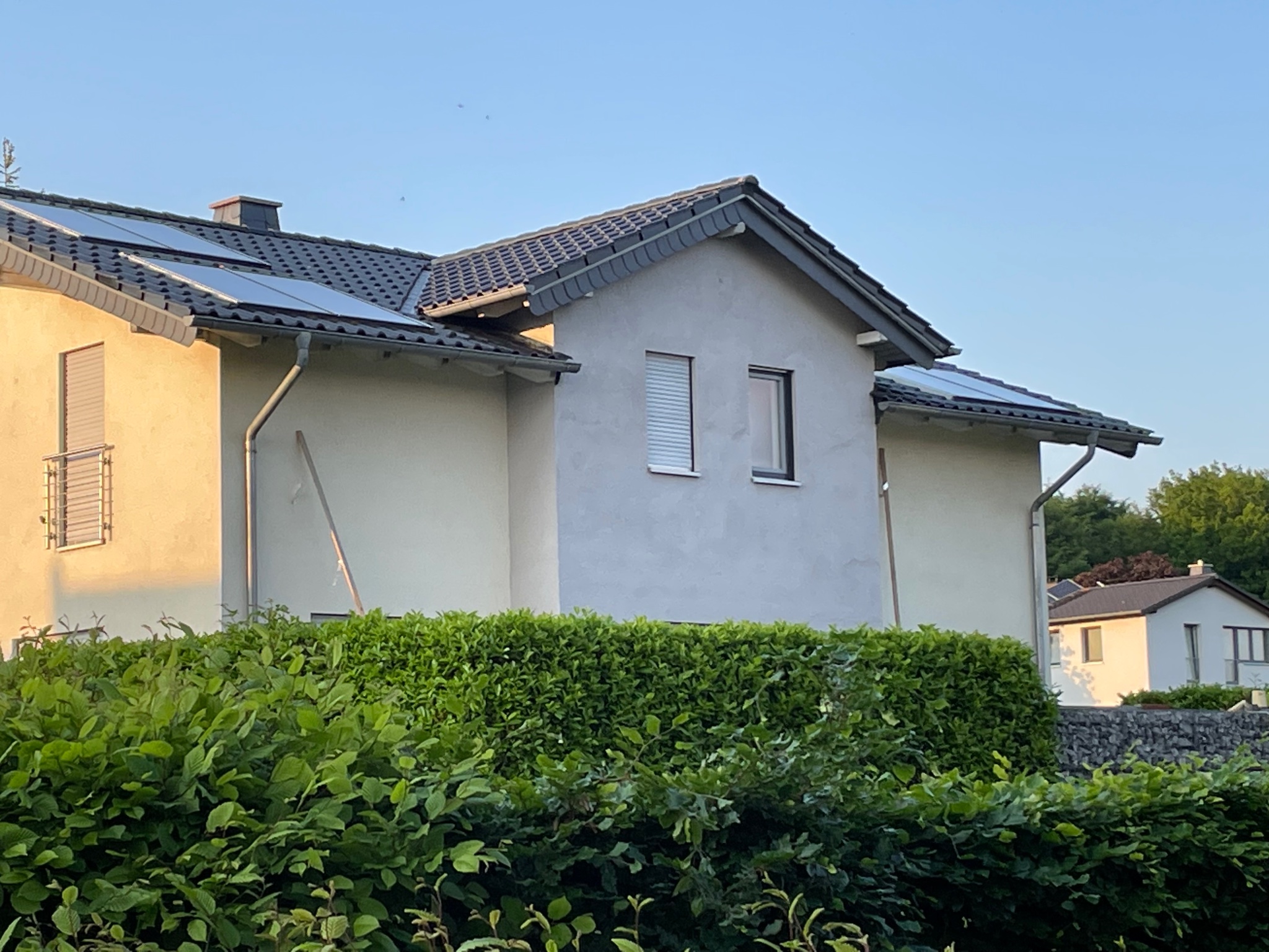 An einem anderen Haus haben sie unterhalb der gespannten Schnüre angefangen zu bauen, da bin ich mal gespannt, wie es nach oben hin zum Abschluß kommt, in der Hoffnung das man das Nest beläst. Werde bei Gelegenheit die Besitzer mal ansprechen.