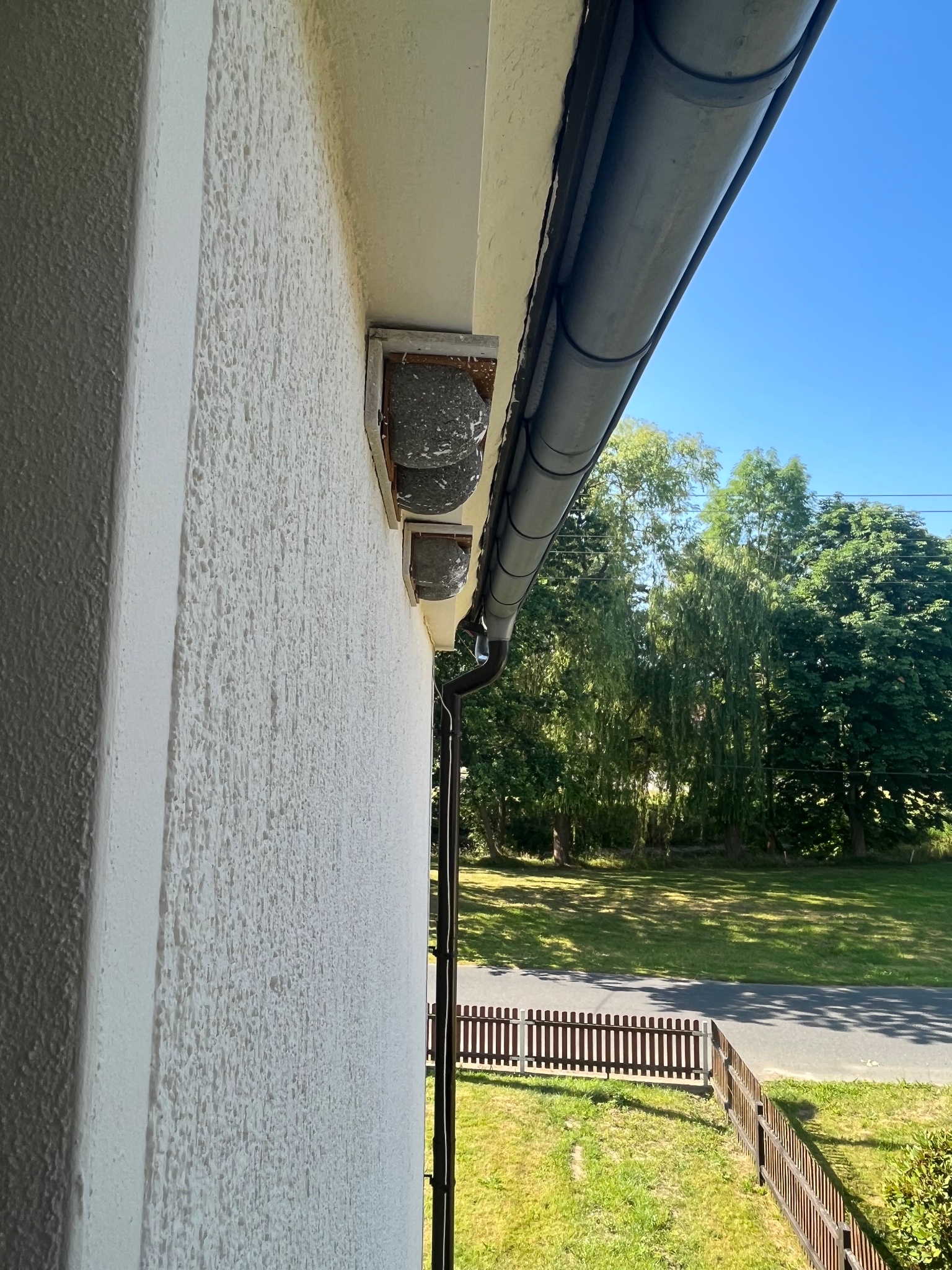 An einem Haus, dessen Besitzer ich neulich noch zwei Kunstnester übergeben hatte, weil die Naturnester abgefallen waren , wurden zwei neue gebaut …