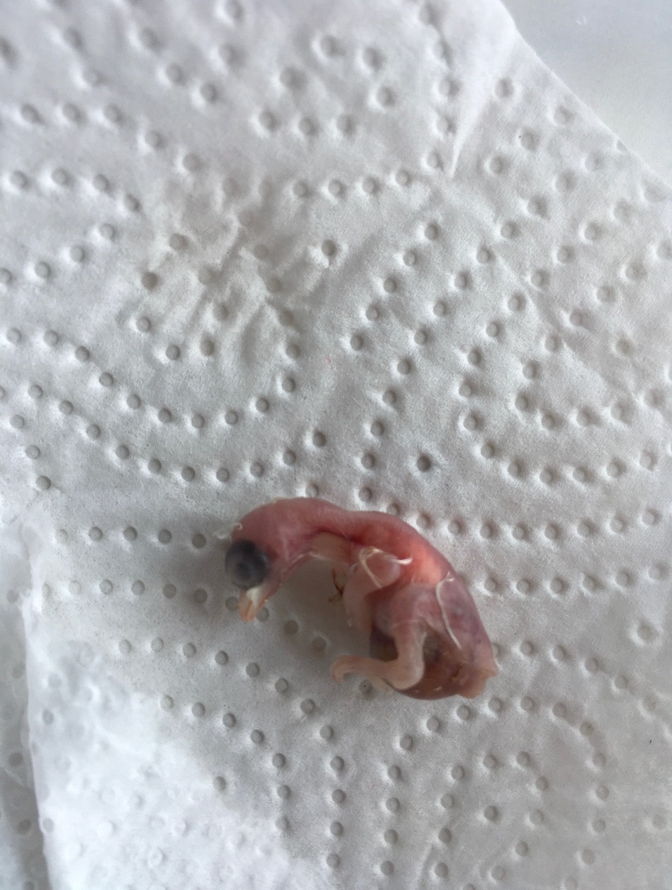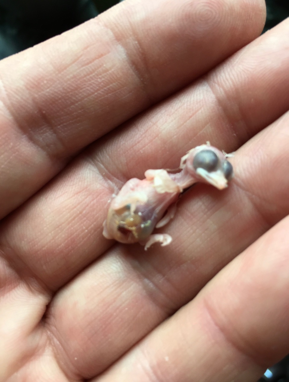 Heute Morgen lag dann das 2. Küken tot unter dem Nest. Eindeutig kalt und tot. Also von den 3 Eiern der 2. Brut sind bereits 2 Küken tot.