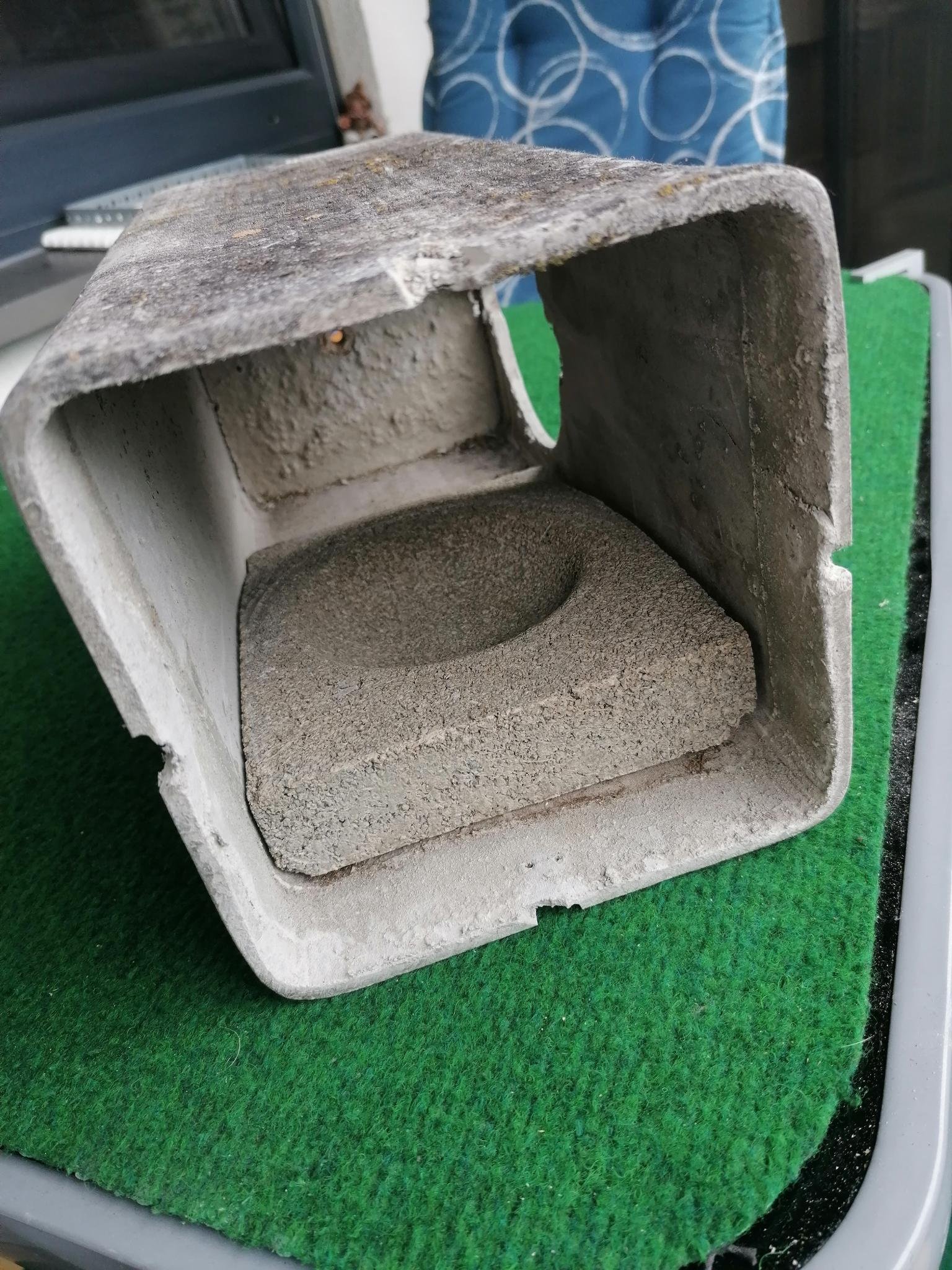 Ich denke ein Holzbrett von 2 cm Dicke mit einer 10 cm Bohrung ist die beste Variante für eine Nistmulde. Den oberen Rand etwas anschrägen und eventuel eine Pappe drunter packen. So kann man das Teil besser rausnehmen und den Kasten reinigen. Wenn es die Kastengröße her gibt die Größe der Nistmulde dem Grundriß des Kastens anpassen.