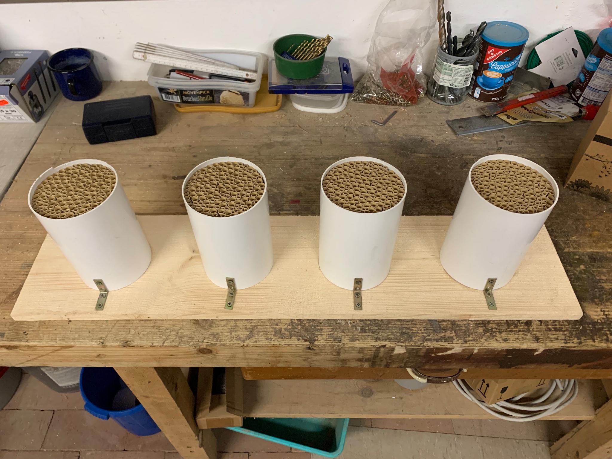 Sie werden jedes Jahr genutzt und ich hatte meine Freude an dem regen summenden Flugbetrieb, aber mit den stapelbaren Brettchen, werde ich für 2024 etwas nachrüsten.