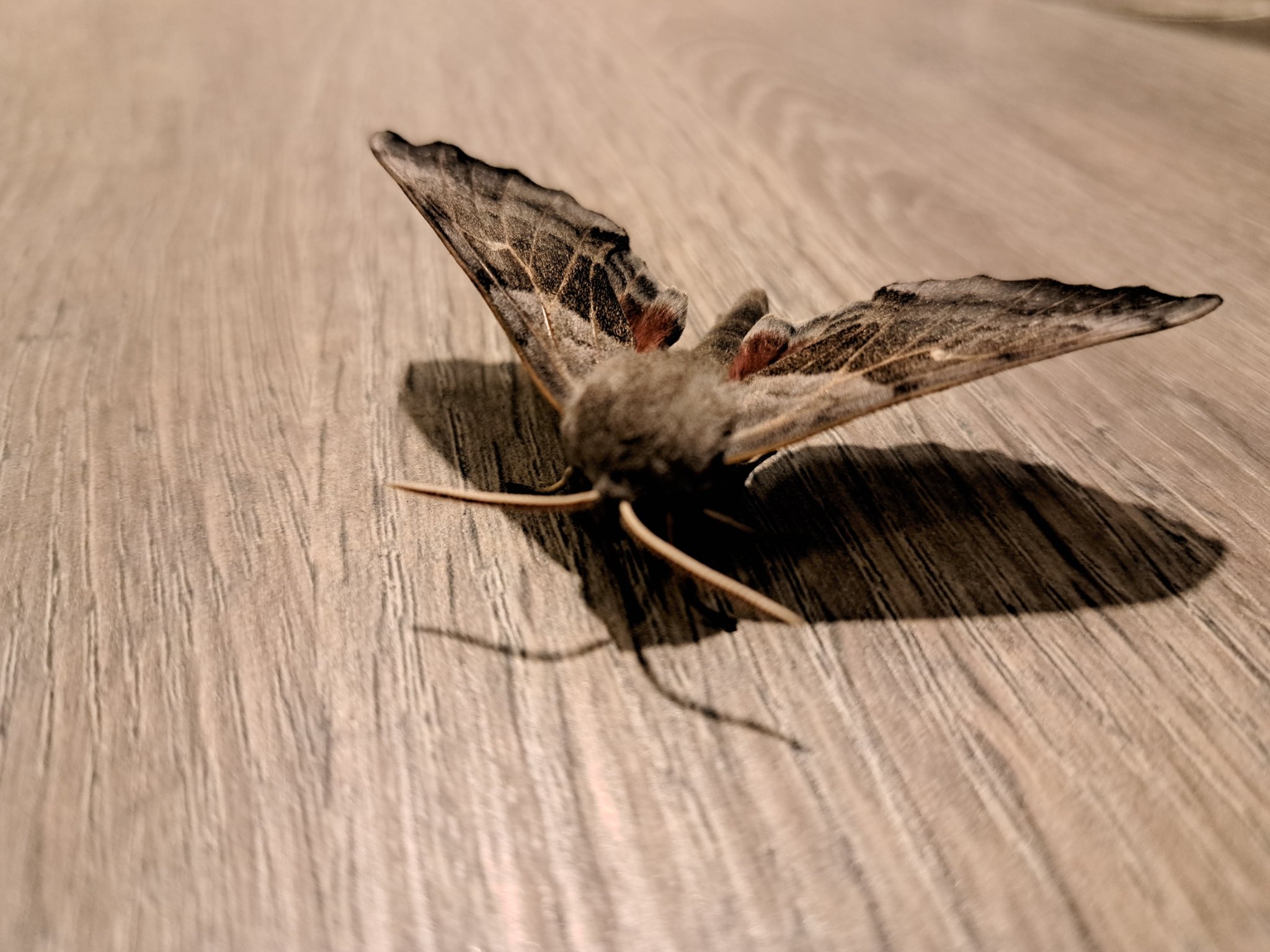 Am 2. Januar erlebte ich eine faustdicke Überraschung, als ich im Krankenhaus meine Arbeitskollegen besuchte. Da saß eine größere Motte an der Wand. Die Kollegen berichteten, dass die schon seit mindestens drei Tagen da sitze, einmal sei sie einem Pfleger an den Kopf geflogen (was zum Glück für beide glimpflich ausging