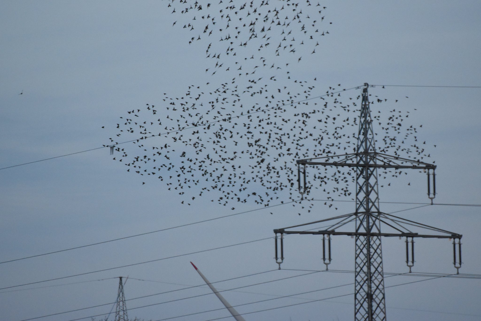 Heute abend habe ich mit meiner Tochter die ehemaligen Rieselfelder in Bielefeld Windelsbleiche besucht. Dort übernachten zur Zeit (jeden Abend ab 18:30 Uhr) große Starenschwärme.