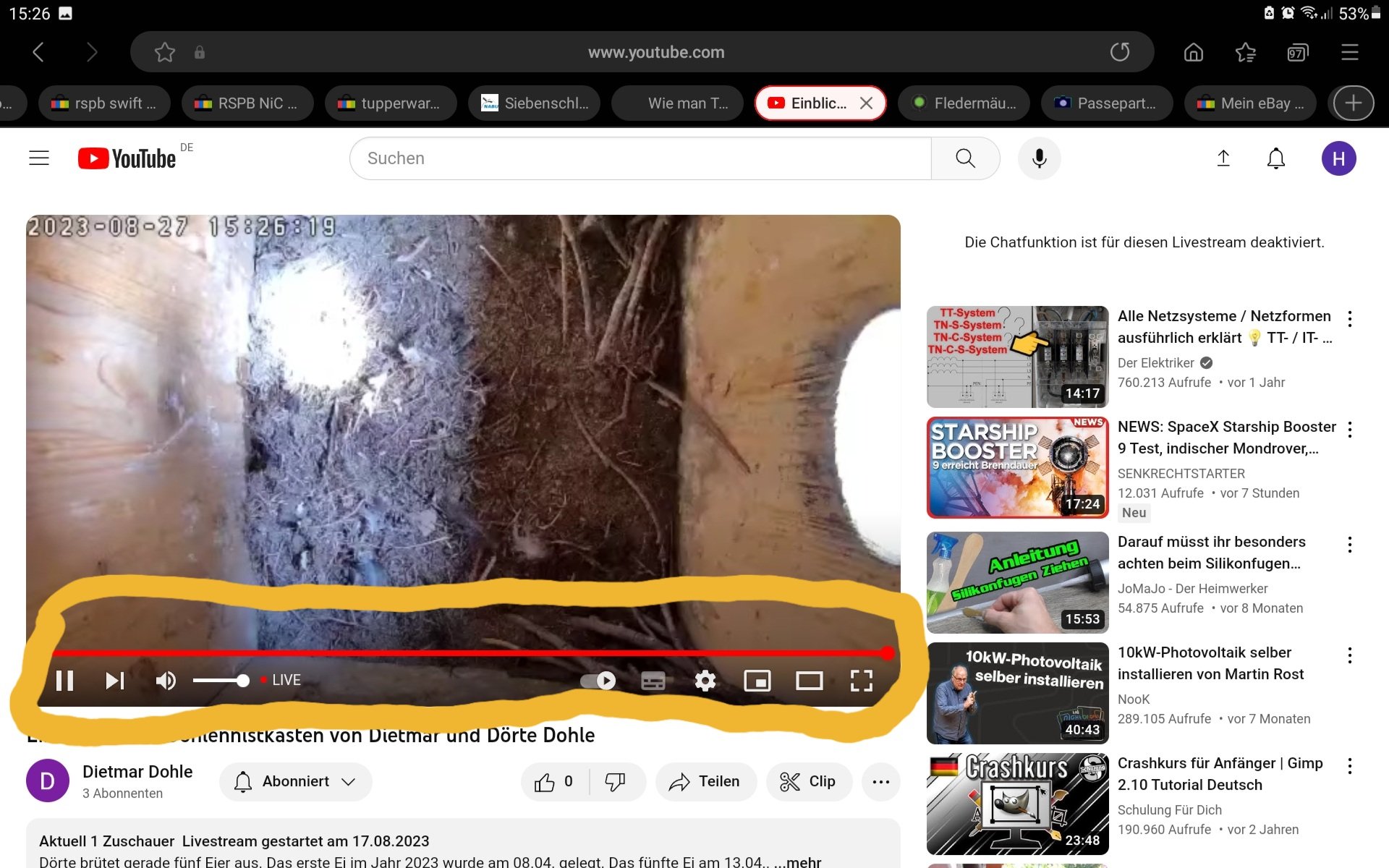 Gleichzeitig läuft ja auch über dieses Netzwerk noch die Storchenkamera, diese kann allerdings den H265 codec, welcher eine hohe Auflösung bei geringer Bandbreite erlaubt.
