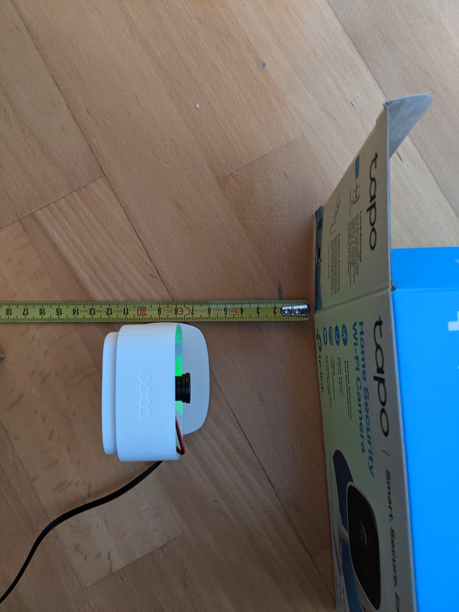 Zum Testen habe ich dann die Kameraverpackung ca 7 cm vor die Kamera gestellt und das Objektiv so justiert, dass es ein scharfes Bild ergibt.