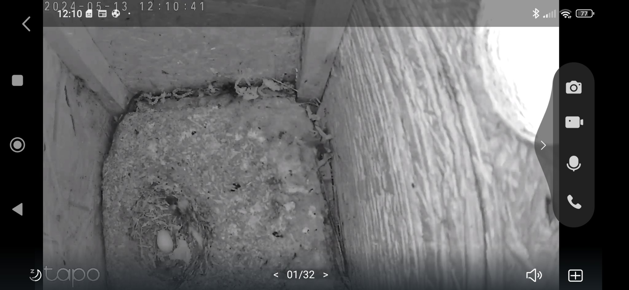 Die Kammern füllen sich, die Kameras zeigen aber auch Überraschendes, das mir ohne entgangen wäre. Zwei Beispiele: So hatte ich mich gefreut, dass vor ein paar Tagen endlich der erste Einflug in Balkonkasten 4 stattfand ind auch schnell ein Partner dabei war. Sie schliefen gleich zusammen auf dem Nest. Vor 2 Tagen flogen beide abends aus und kamen erst gestern morgen zurück. Gestern Abend verschwanden beide wieder und würden heute überhaupt nicht gesehen. Mal sehen, was da morgen passiert.