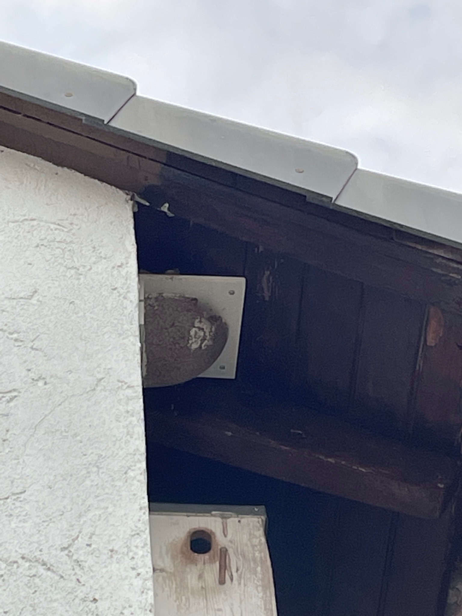 Dort flog seit Gestern immer eine Mehlschwalbe in den Hohlraum über dem Nest ein , genauso, wie es die ausgeflogenen Jungschwalben taten.