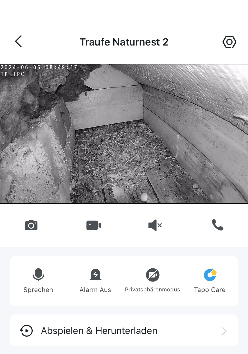 In Traufeeinflug 2 wurde des 3er-Gelege zwischenzeitlich doch komplett aufgegeben und ab und an sind 2 Eier in der Kamera zu sehen. Auch kein Zeichen von Nistmuldenbau.
