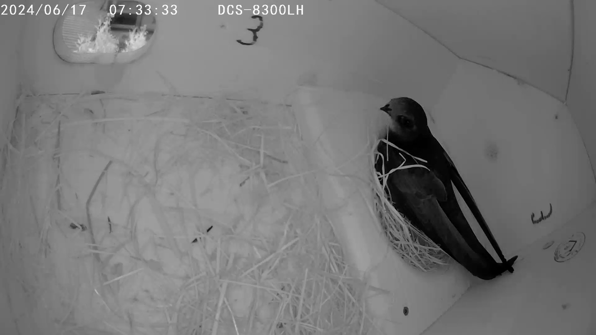 1 x Viererkasten 2024, 1. Einflug + Übernachtung: 03.06., 1. Ei: 18.06., 2 Ei: 20.06.