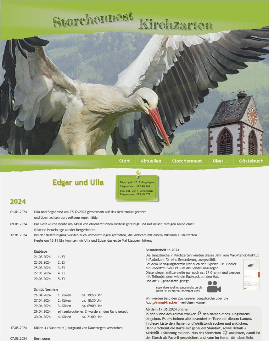 Die sehr informative Homepage vom Storchennest Kirchzarten: