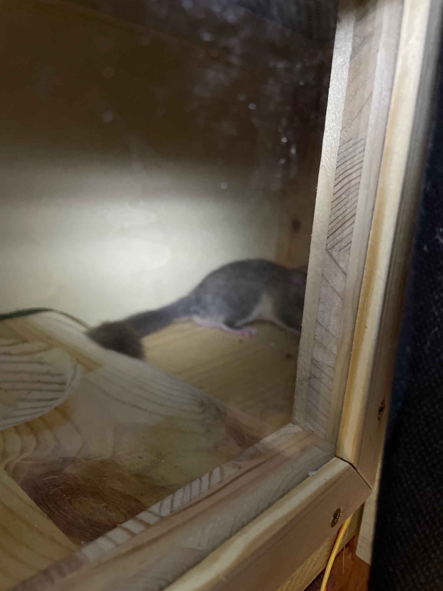 als ich gestern auf dem Dachboden nach der Spätbrut schauen wollte , bemerkte ich im Kasten darunter, bei schlechten Lichtverhältnissen, das darin etwas war .