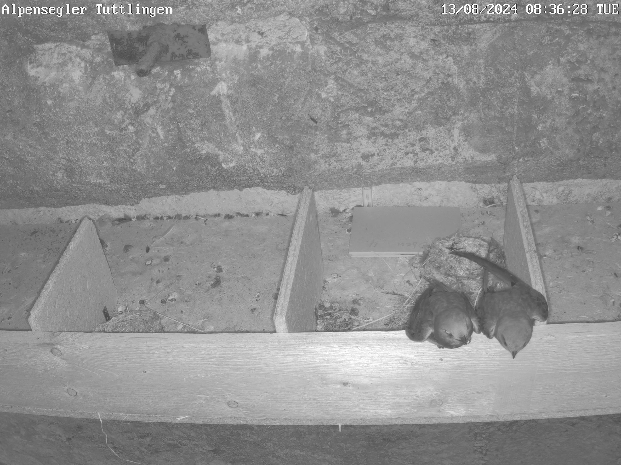 auch bei den Alpenseglern wird es ruhiger. Die typischen Bettellaute der JV sind kaum noch zu hören, die Nistplätze im Innenraum sind immer öfters leer. So wie es aussieht sind schon viele JV abgeflogen.