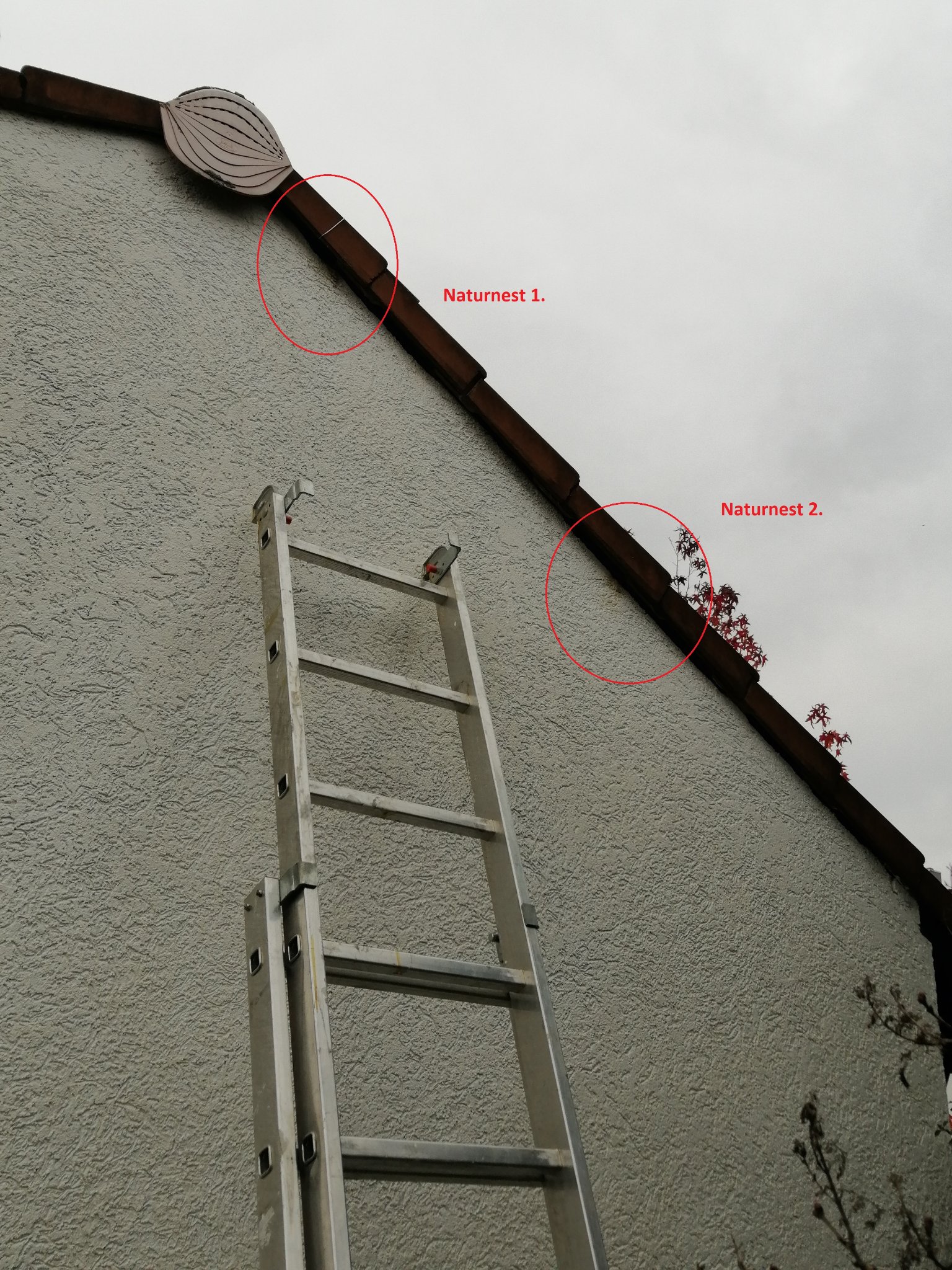 im Bereich der Traufe ( wo Nabu- Kästen hängen)