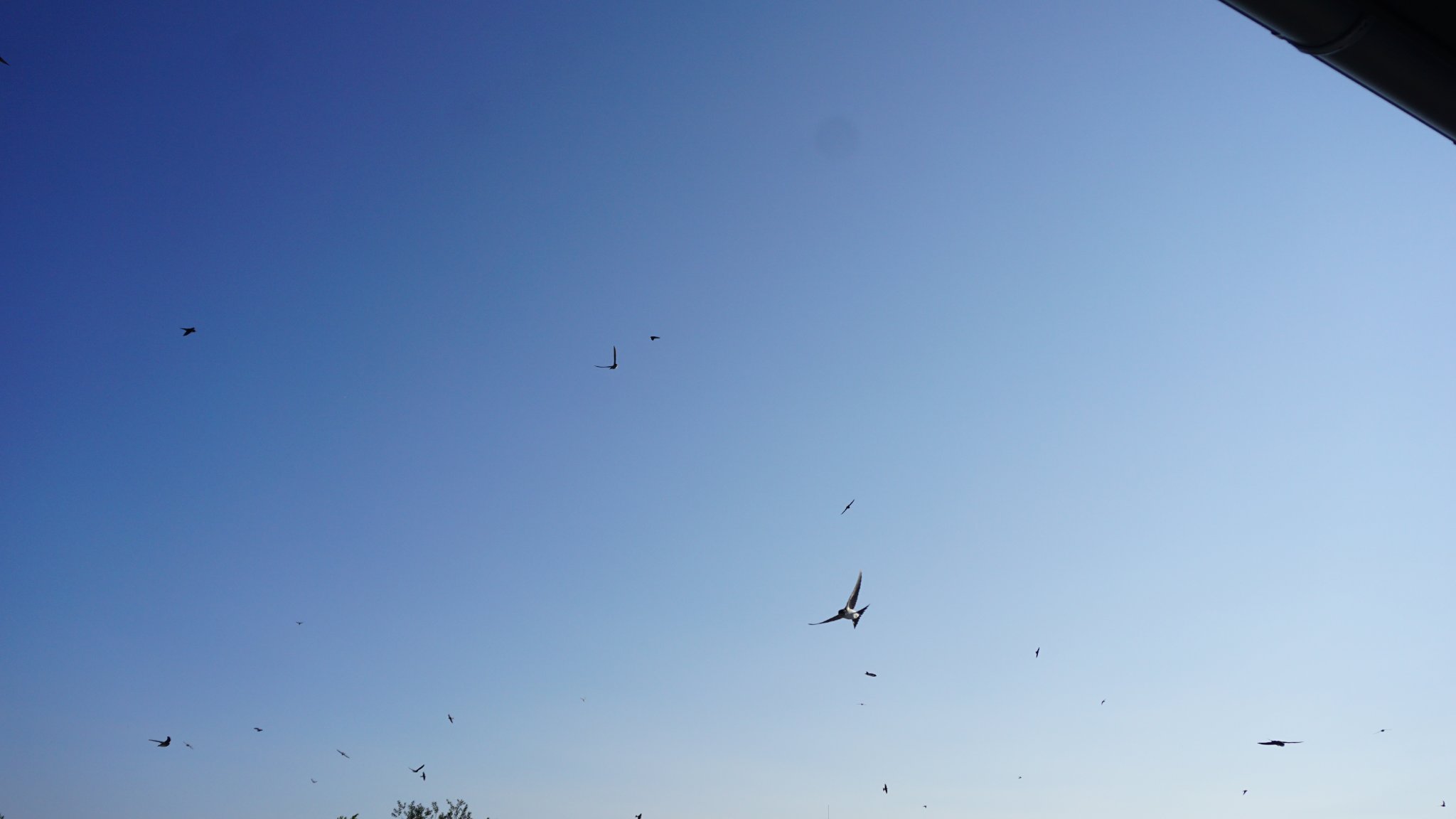 auch hier extrem viel los. Selbst Rauchschwalben fliegen teilweise die Mehlschwalben Kunstnester an