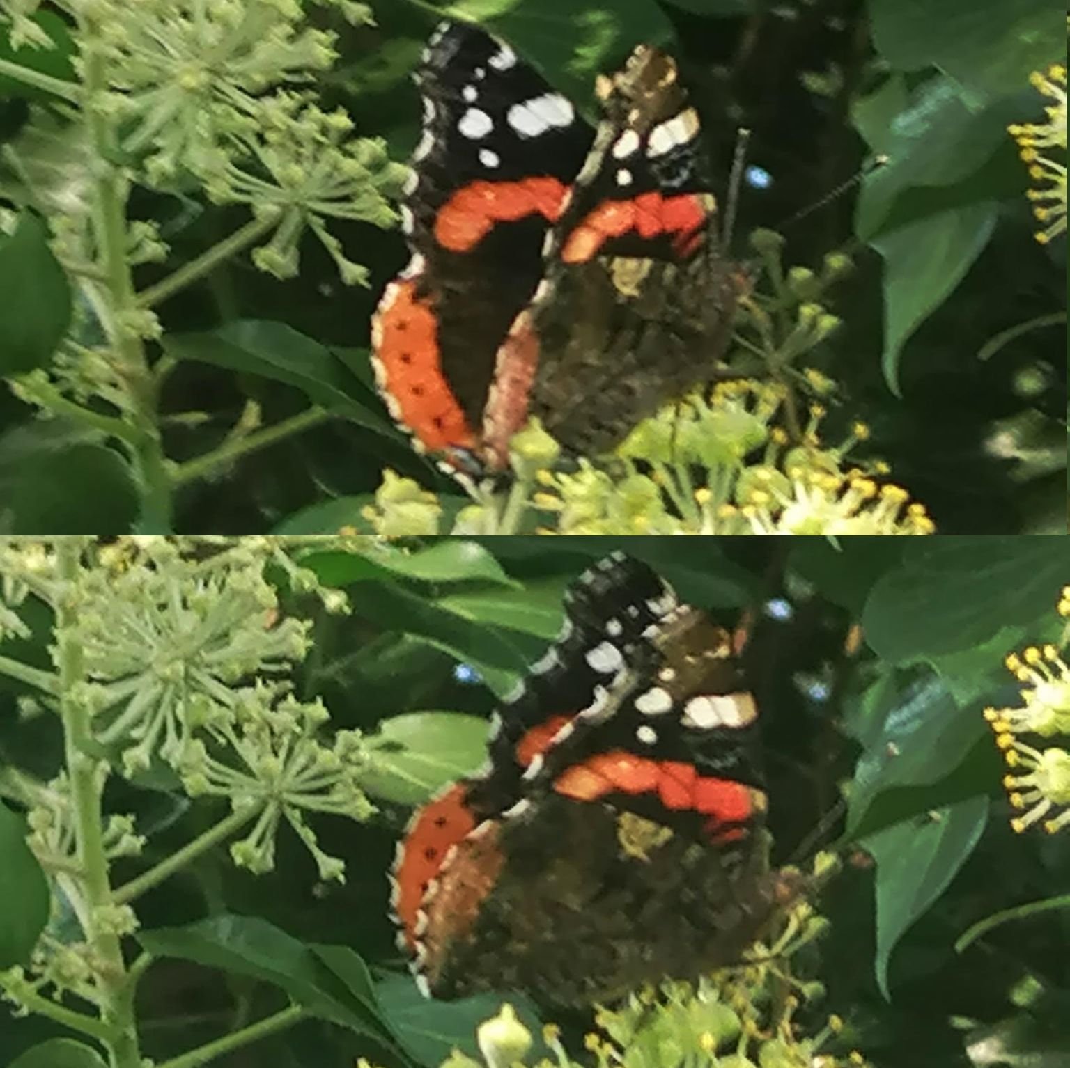 und schon am 18. September mehrere Admirale beim Spaziergang am Hafen sehr weit oben an einem großen Busch.