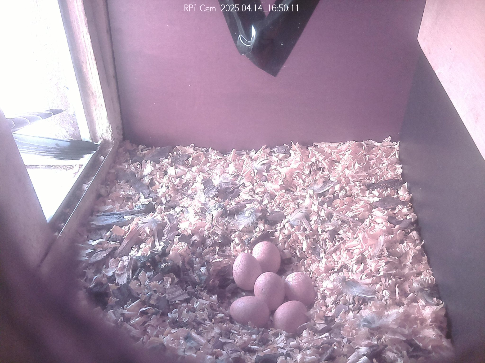 Seid ich den Einflug verengt habe, rücken die Gelege eher zur Luke, dass liegt wohl daran, dass die Dame ihre Neugierde befriedigt wissen will. Das Brutgeschäft ist eintönig, Sie hat aber so alles im Auge.