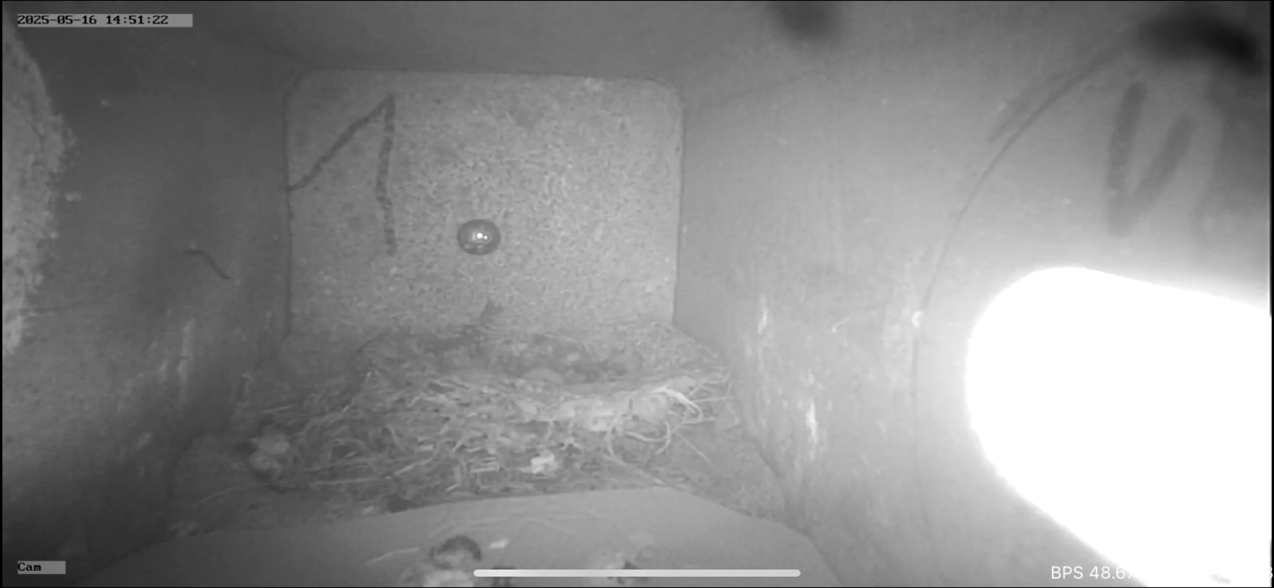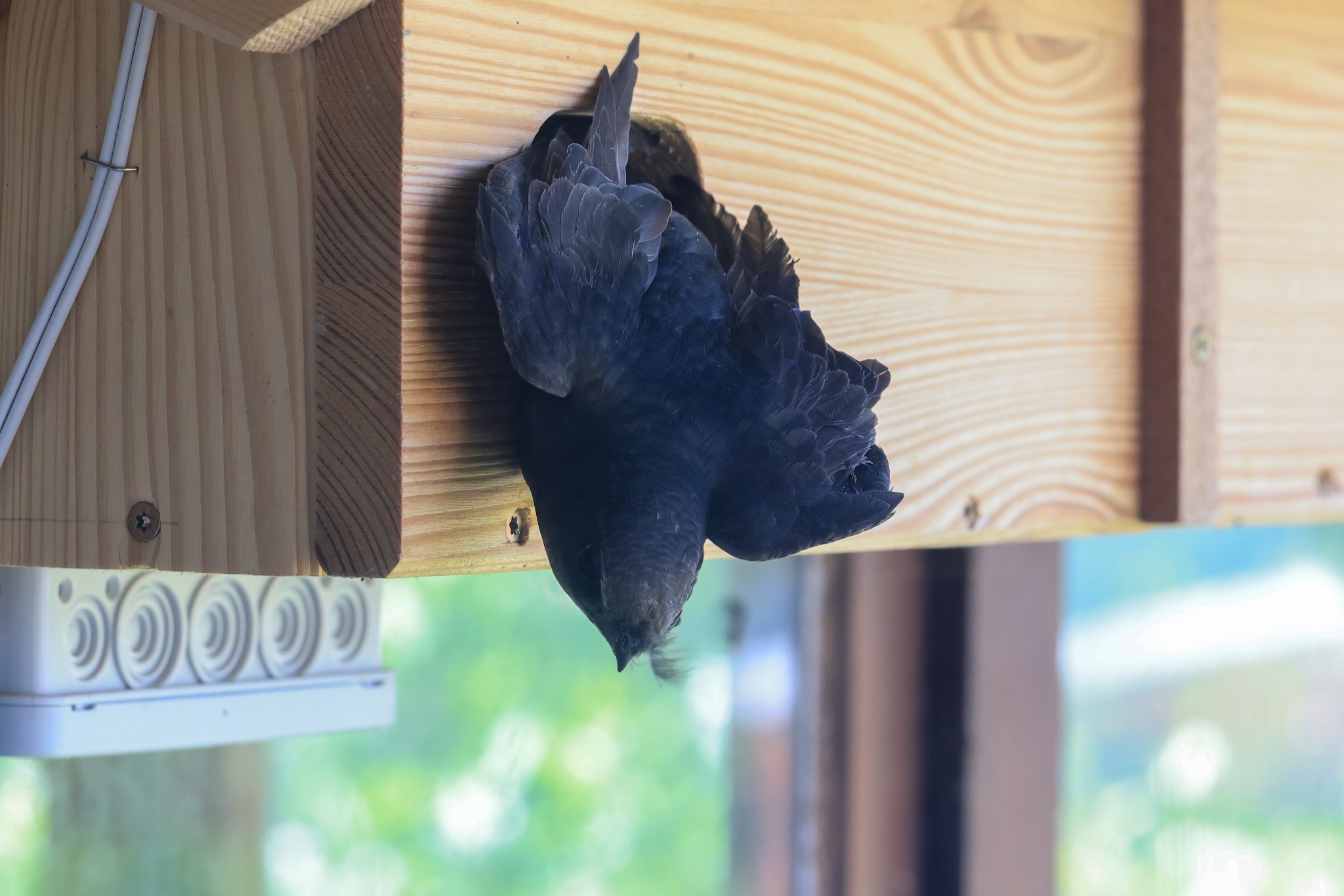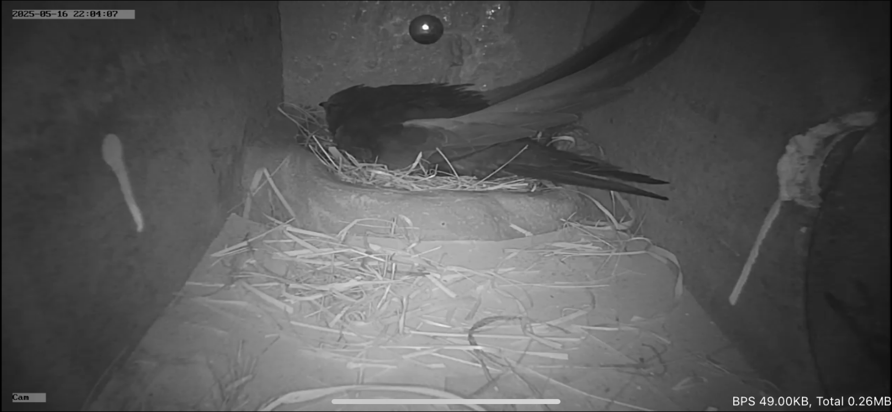 Im Traufekasten 3 weiterhin nur ein Segler, der jetzt die Schwegler Nistmulde und das eingelegte Nistmaterial für sich entdeckt hat und nutzt![]()