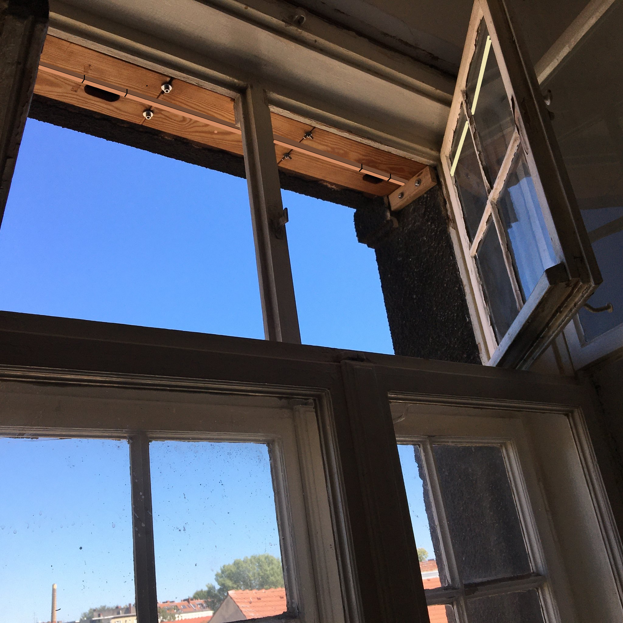 Ich habe vor ein paar Monaten einen Nistkasten in eine Fensternische eingepasst. Dort war vormals im Altbau über dem Fenster hinter der Fassade eine jalousie eingebaut, die vor Jahrzehnten entfernt worden war.