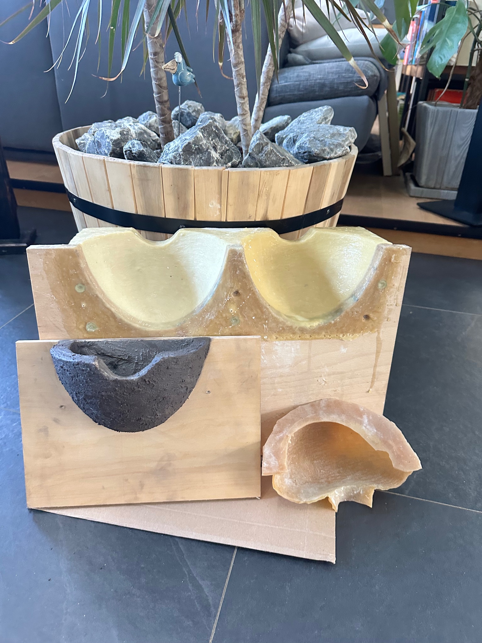 ich habe mir zwei Gussformen gebaut, um künstliche Mehlschwalbennester herzustellen. Der erste Prototyp ist inzwischen fertig: