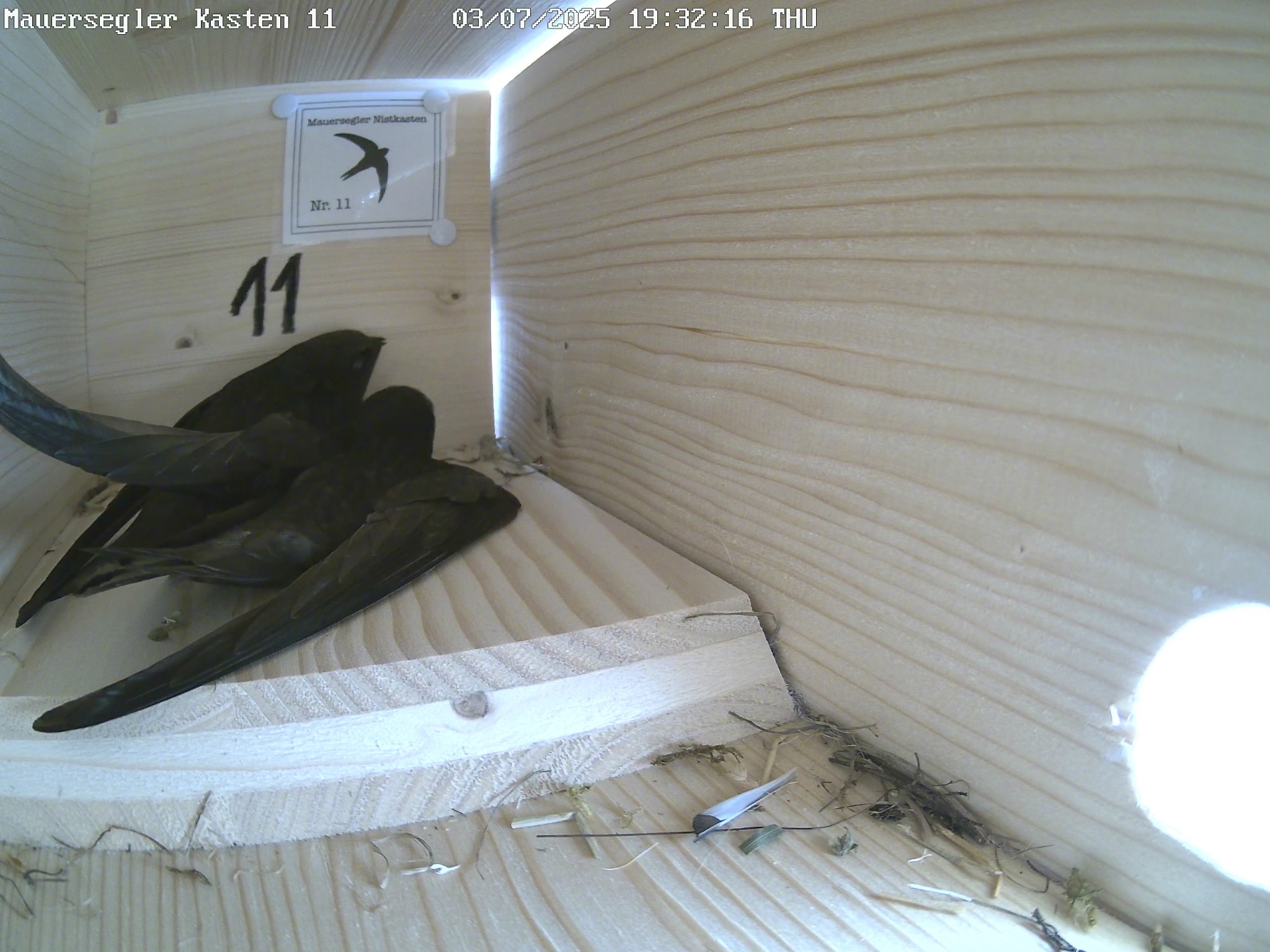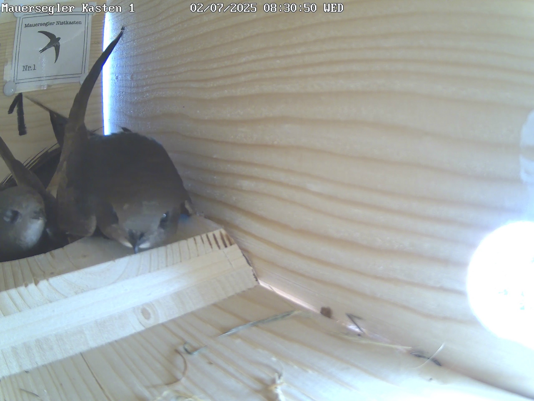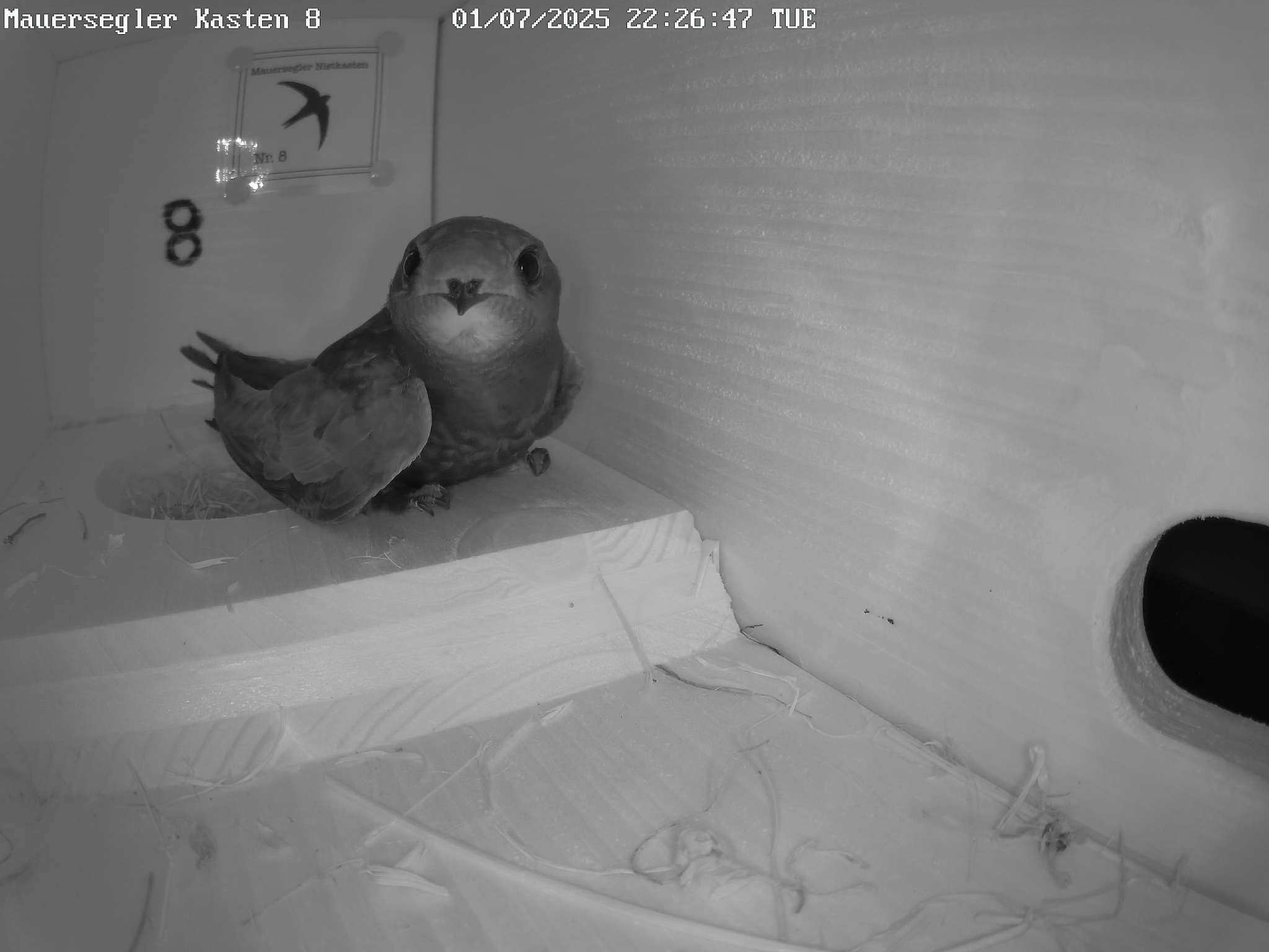 Hier zeigt die Wetter-App aktuell noch 26°C. Ich war erst gegen 21:00 Uhr vor Ort. Da war richtig Betrieb. Jetzt ist es ruhig und ich höre von mehreren Stellen das leise Sirren der JV. Die älteren erscheinen zunehmend an den Einflügen. Wie's in den Kästen aussieht, weiß ich gerade nicht, denn die Kameras haben z.Zt. hitzefrei. Ich rechne in den nächsten Tagen mit den ersten Ausfliegern und hoffe ganz innig, dass die ganz Kleinen morgen mit den Temperaturen klarkommen.