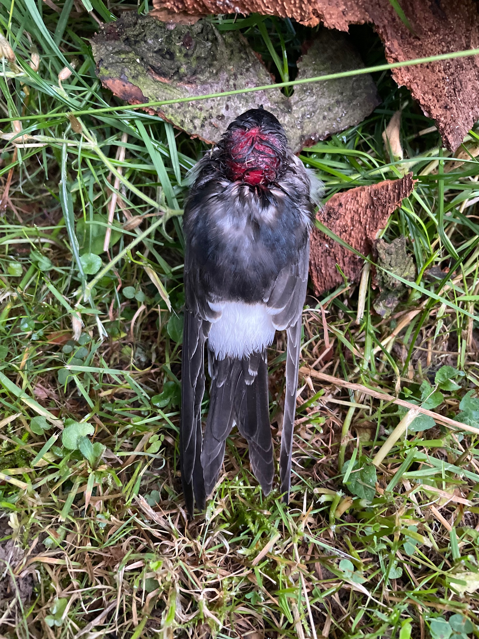 Auch habe ich heute Vormittag wieder viele kleine Brustfedern aufgesammelt. Wird es wohl wieder eine Schwalbe weniger geben... 🥺