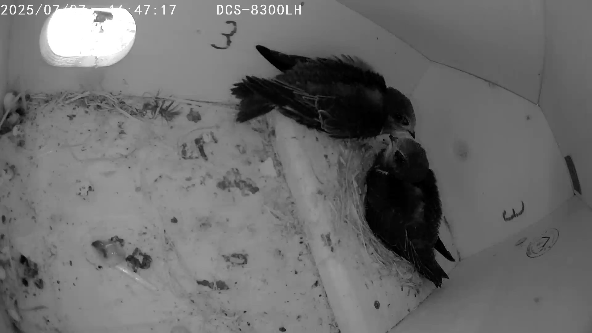 Bei mir war, wie ich über die Kamera verfolgen konnte, Samstag ab ca 15 Uhr großes Drama im Einflug 3 ;( :S hier hat es 2 größere und ältere JV und den Nachzügler aus dem Rollei Little … Little ist aus dem Nest raus gewesen und noch blind am Ausflug rumgeturnt … die einfliegenden AV haben ihn trotz seiner Rufe nicht gefüttert … und ich nicht daheim ;( :S